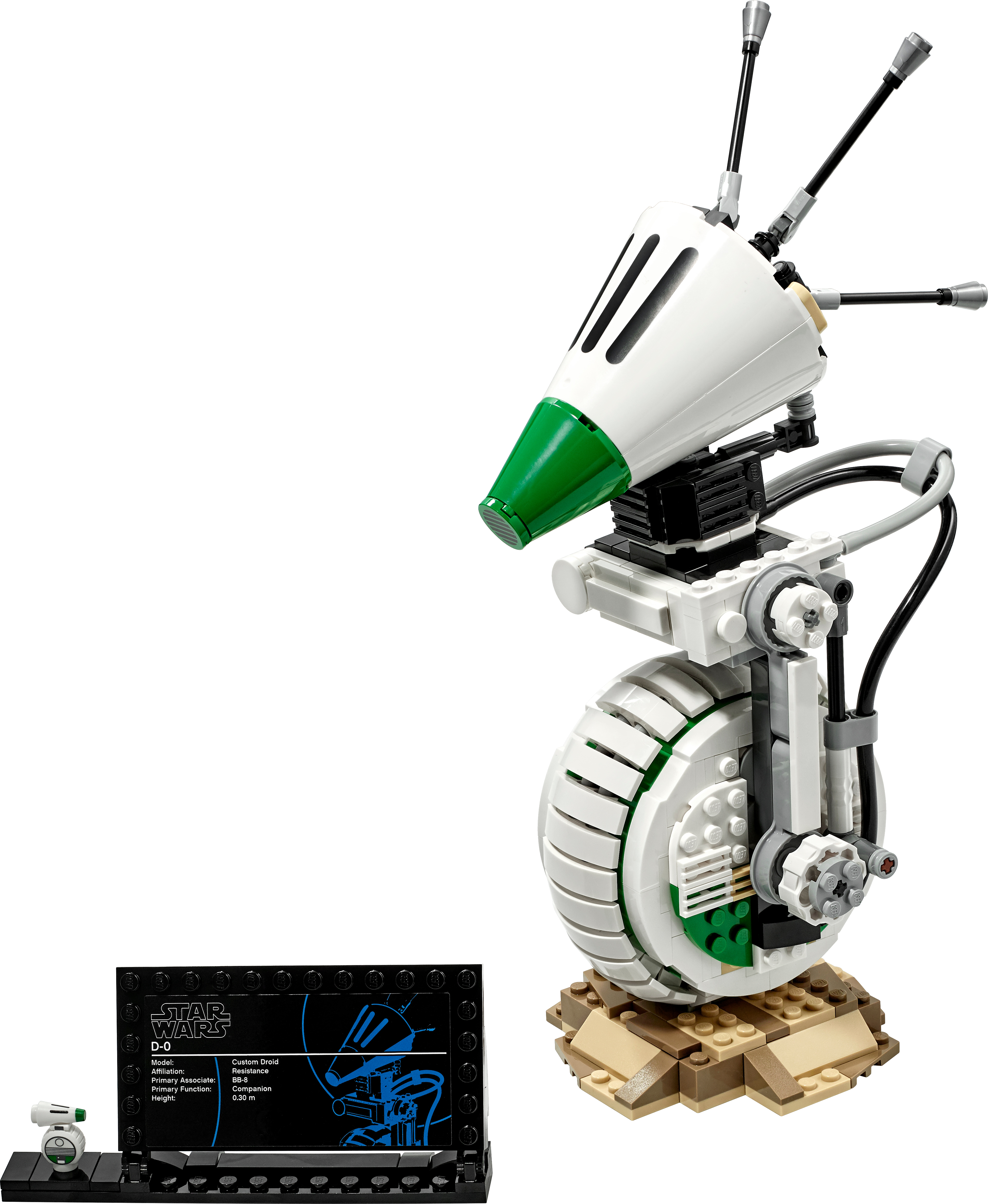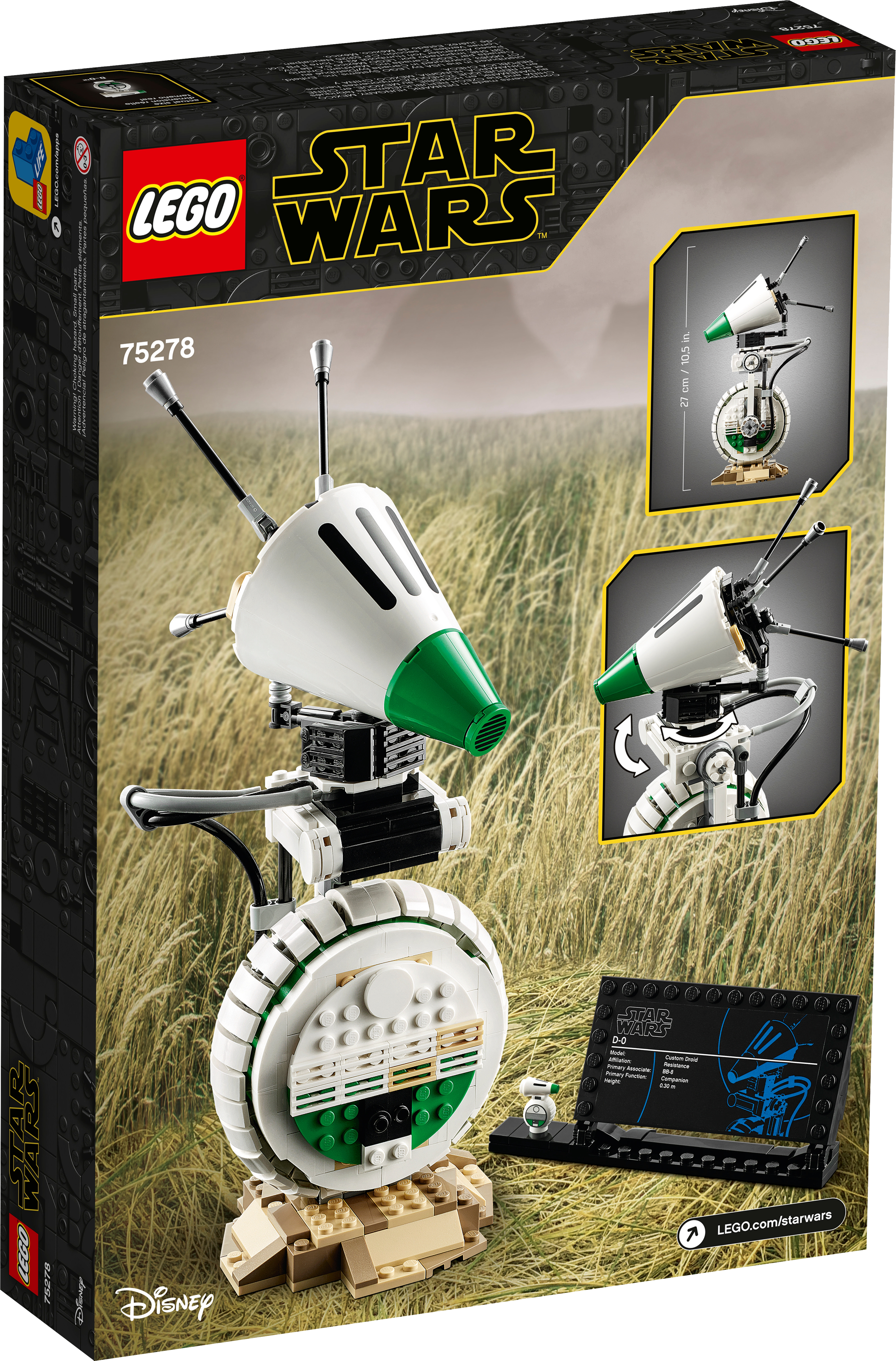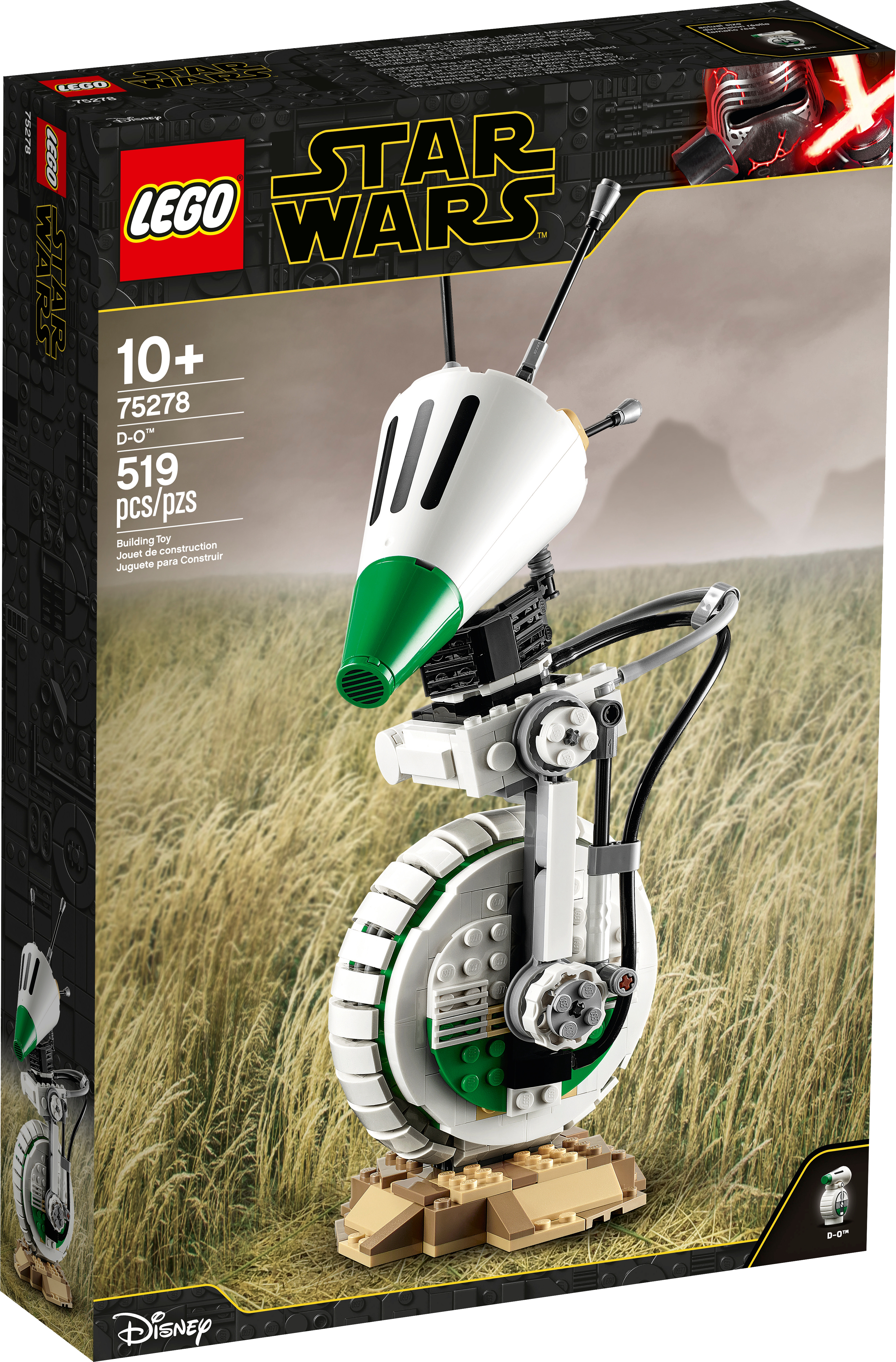 Spark memories of exciting Star Wars: The Rise of Skywalker movie scenes with this cool LEGO® Star Wars™ D-O (75278) droid building toy. Authentic details of this lovable Star Wars character are superbly recreated with LEGO bricks and fans will be delighted by D-O's 360-degree-rotating and tilting head, and posable antennas.Fans can build their own collectible model of the lovable D-O (75278) droid from the Star Wars: The Rise of Skywalker movie, reproducing authentic details in LEGO® style to create a fantastic build-and-display piece.The model has posable antennas and its head tilts and rotates 360 degrees just like the Star Wars™ character. It comes with a built-in display stand, plus an information sign and D-O minifigure to delight collectors.This D-O droid build-and-display model is new for May 2020 and makes a delightful addition to any Star Wars™ fan or LEGO® builder’s collection.This cool, 519-piece LEGO® Star Wars™ droid building toy is great fun for creative Star Wars fans aged 10+, and makes the best birthday gift, Christmas present or special occasion surprise.The buildable D-O droid measures 10.5” (27cm) high, 4” (10cm) wide and 6” (16cm) deep – it doesn't take up too much space but will make a big impression displayed at home or in the office for friends to admire.This cool, battery-free building toy offers a stress-relieving building experience. So take time out and enjoy constructing a fantastic Star Wars™ character build-and-display model on your own, with family or friends.Thinking of buying this D-O model for a Star Wars™ fan new to LEGO® sets? No worries. It comes with clear, step-by-step instructions so they can take on this building challenge with Jedi-level confidence.LEGO® Star Wars™ construction kits are great for fans of all ages to buildand display the models, recreate epic scenes from the Star Wars saga and create their own exciting stories. There’s something for everyone!Ever since 1958, LEGO® bricks have met the highest industry standards, which ensures that they connect strongly and pull apart easily – no need to use the Force!LEGO® bricks and pieces are tested in almost every way imaginable to ensure that this Star Wars™ D-O construction toy meets the highest safety standards on Earth (and in any other galaxy you travel to!).