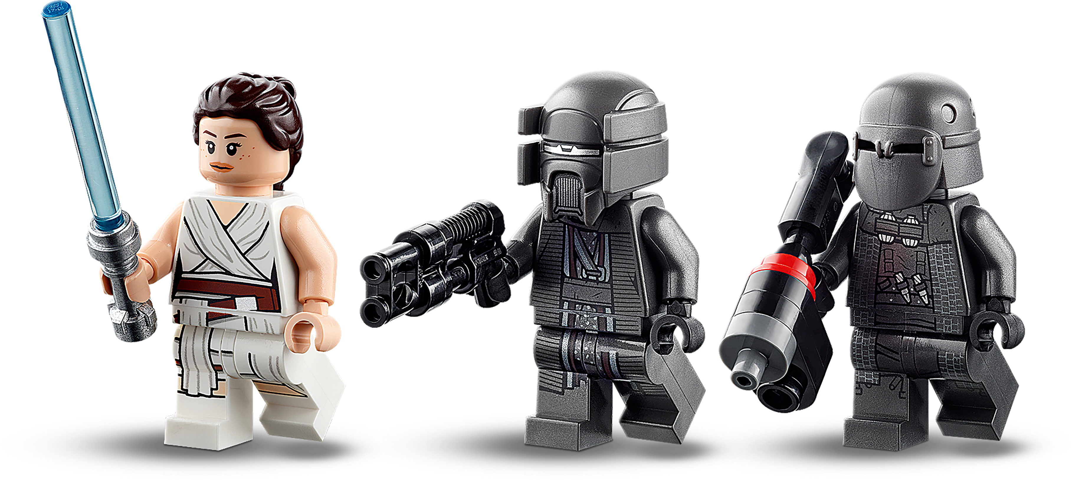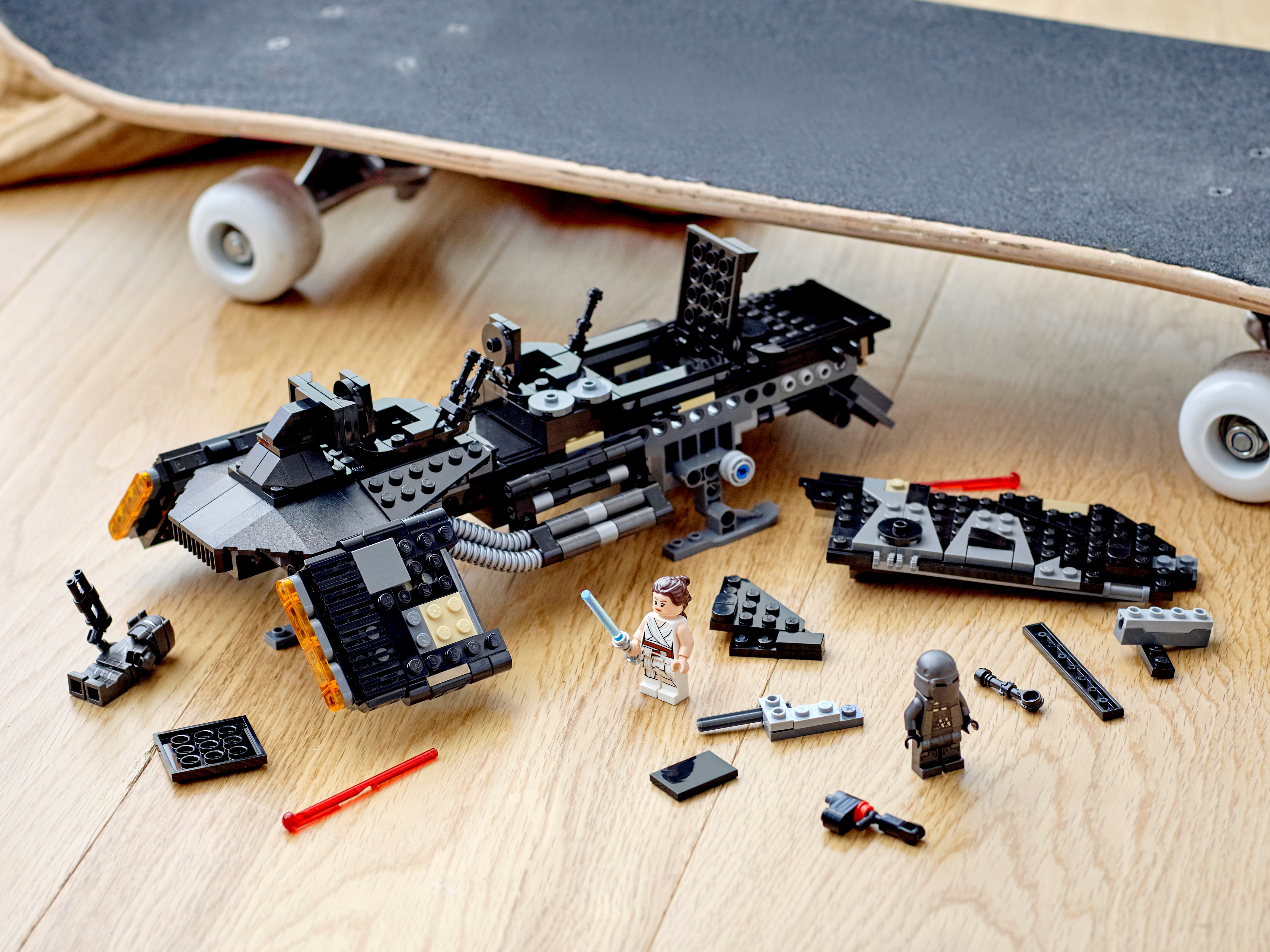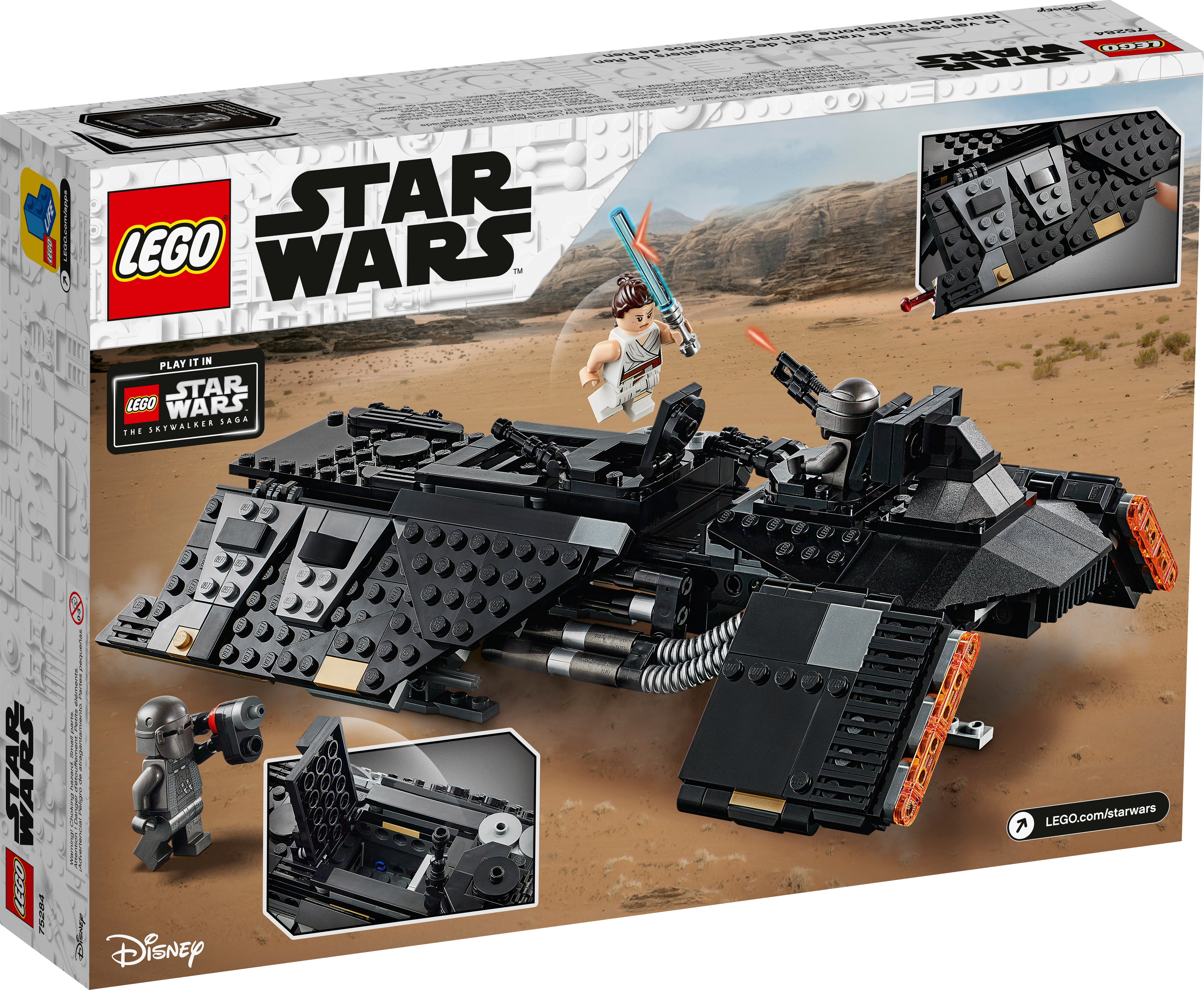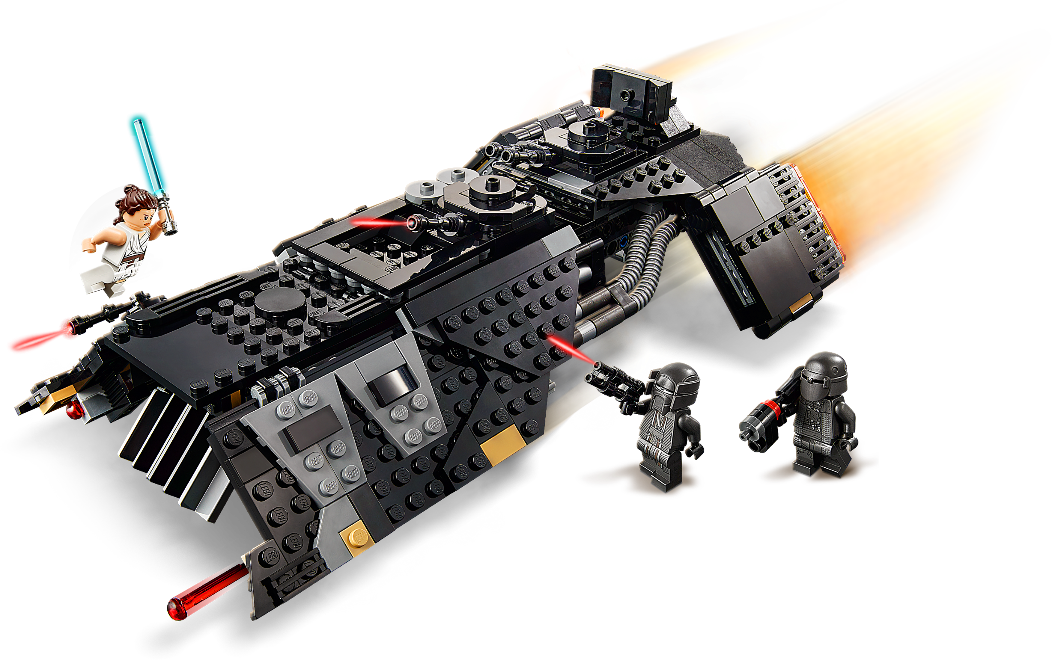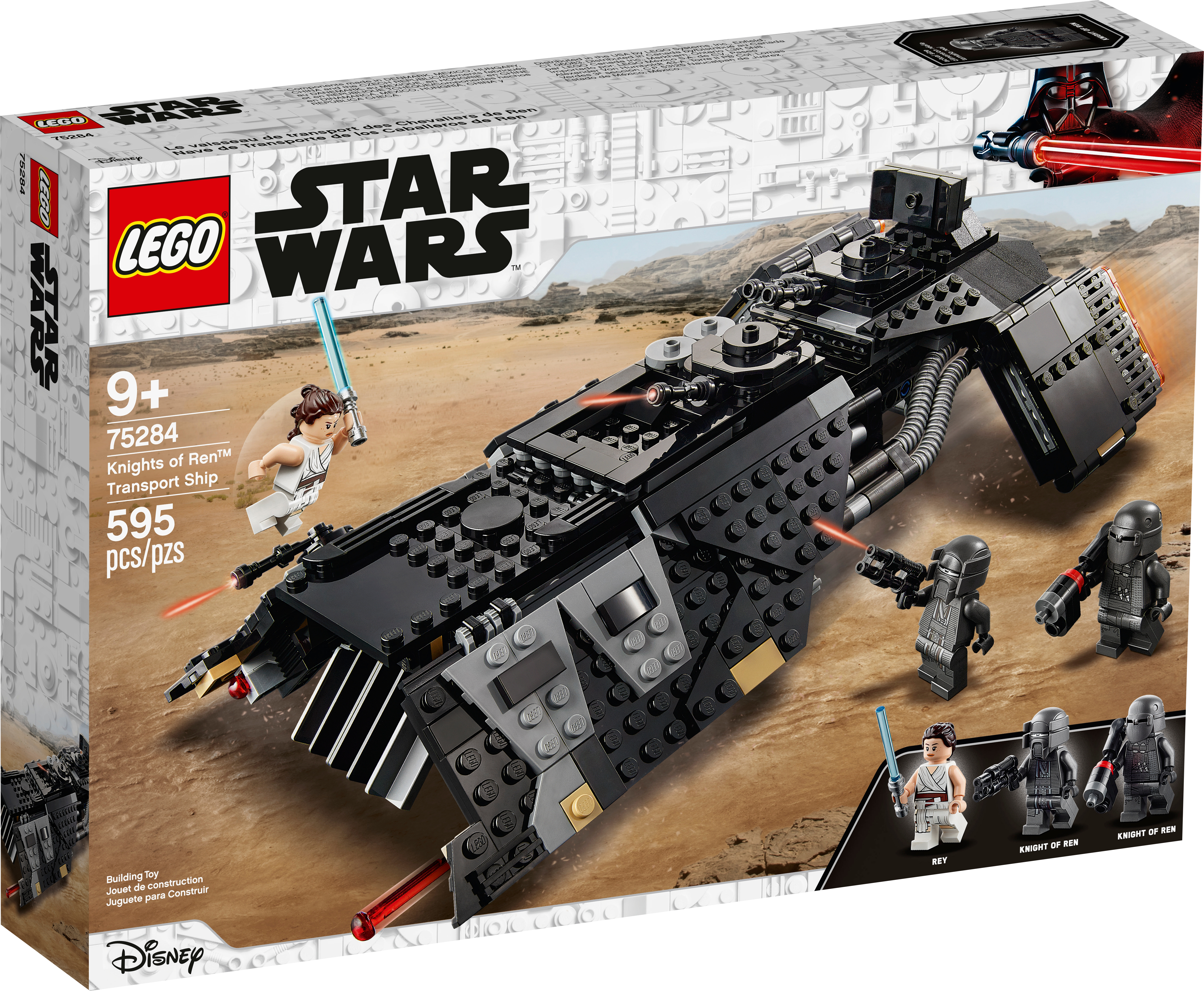 Fans can relive epic Star Wars: The Rise of Skywalker action scenes with this Knights of Ren Transport Ship (75284) LEGO® building set. Hidden ‘skis’ underneath this Star Wars™ villains’ starship replicate the hover effect, and it has 2 opening cockpits for the Knights of Ren, a compartment for a captured LEGO minifigure and 2 spring-loaded shooters to inspire creative play.Knights of Ren vs. ReyBrilliant for solo or group play, this spacecraft building kit comes with 3 LEGO Star Wars minifigures – Rey and 2 Knights of Ren – for role-play battles. It combines brilliantly with other LEGO Star Wars construction playsets for even more creative fun and it makes an eye-catching display piece in any room between playtime missions.Great gifts!The LEGO Group has been recreating iconic starships, vehicles, locations and characters from the legendary Star Wars universe since 1999. LEGO Star Wars is now its most successful theme with top birthday, holiday and surprise gifts for kids and adults.Recreate battles from Star Wars: The Rise of Skywalker with this awesome Knights of Ren Transport Ship (75284) LEGO® building toy for kids.This spacecraft building kit includes 3 LEGO® Star Wars™ minifigures – 2 Knights of Ren with new-for-August-2020 helmets and lots of weapons, and Rey with a Lightsaber – to role-play stories solo or with friends.The space vehicle building toy has ‘skis' underneath for a hover effect, opening LEGO® minifigure cockpits for each of the Knights, a compartment to keep Rey captive, and 2 spring-loaded shooters for fun battles.This 595-piece set offers a fun, creative and rewarding building challenge for boys and girls aged 9+ and makes a super holiday gift, birthday present or special surprise for kids and any Star Wars™ enthusiast.This Star Wars™ spacecraft construction toy measures over 3.5” (8cm) high, 11.5” (29cm) long and 6.5” (17cm) wide. Fans can also fly it in the LEGO® Star Wars: The Skywalker Saga video game.No batteries are needed for this fun space vehicle building toy – it’s constructed purely from LEGO® bricks and powered by kids’ creativity for unlimited Star Wars™ role-play adventures.Buying this cool Star Wars™ villains’ vehicle for a big Star Wars fan who is a LEGO® beginner? Don't worry. It comes with easy-to-follow, illustrated instructions so they can build with Jedi-like confidence.LEGO® Star Wars™ building kits are fantastic for kids (and adult fans) to recreate scenes from the saga, play outtheir own creative stories or just build and display the collectible construction models.No need to use the Force to connect or pull apart LEGO® building bricks! Ever since 1958, they have met the highest industry standards to ensure they fit together with ease.LEGO® bricks and pieces are tested to the max so you can be sure that this Star Wars: The Rise of Skywalker set meets the highest quality and safety standards on planet Earth – and in galaxies far, far away!