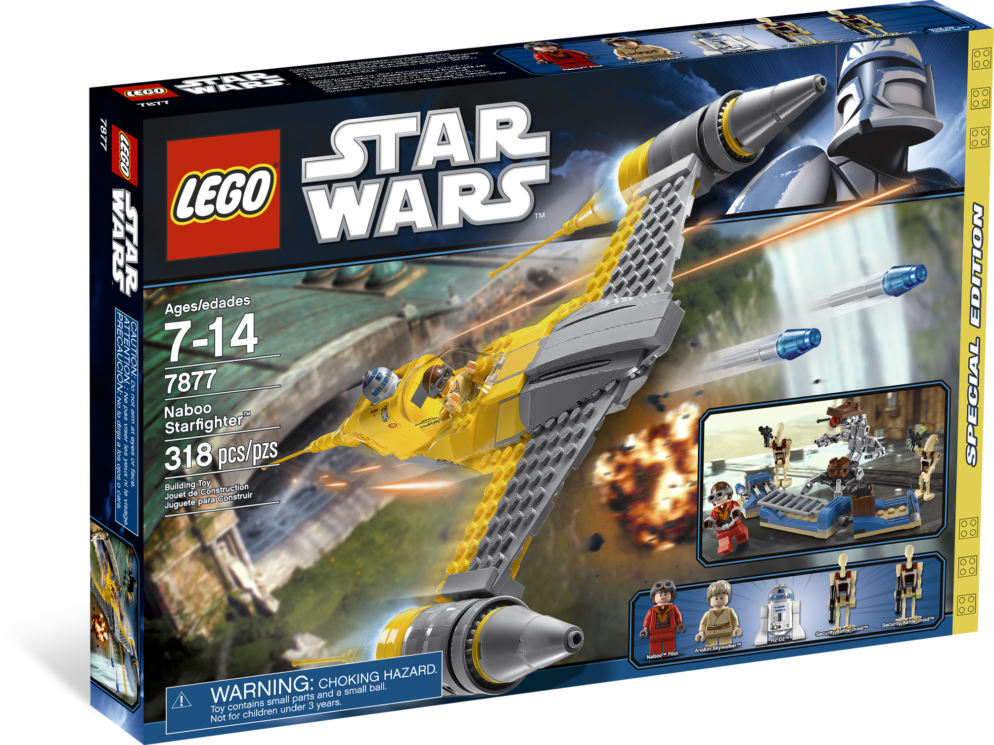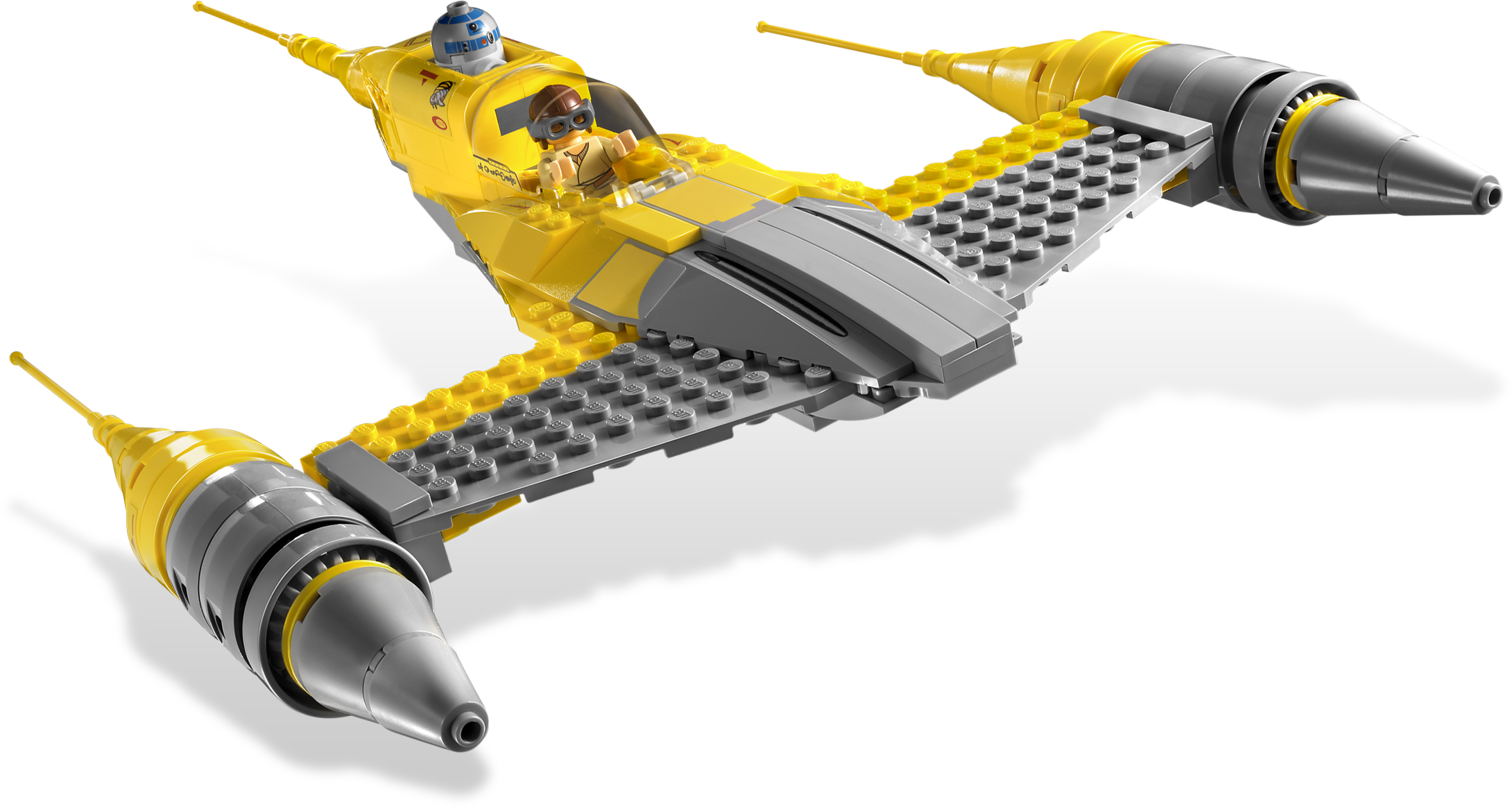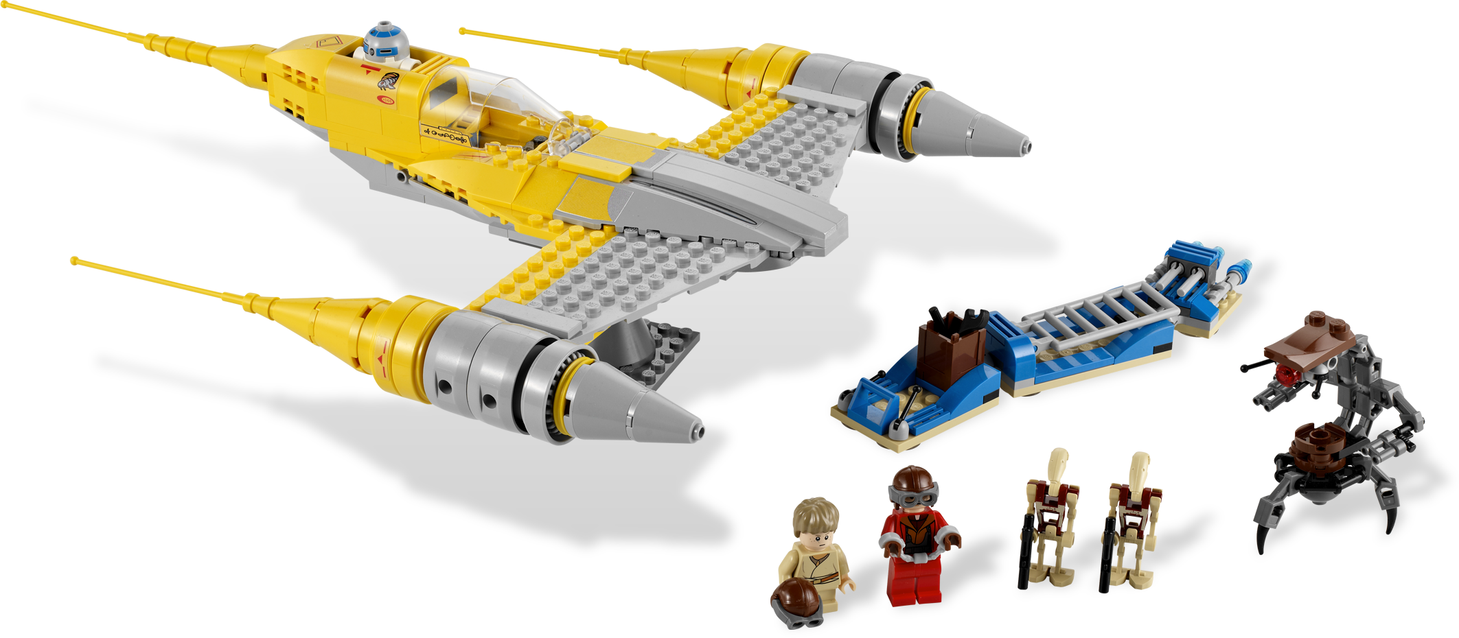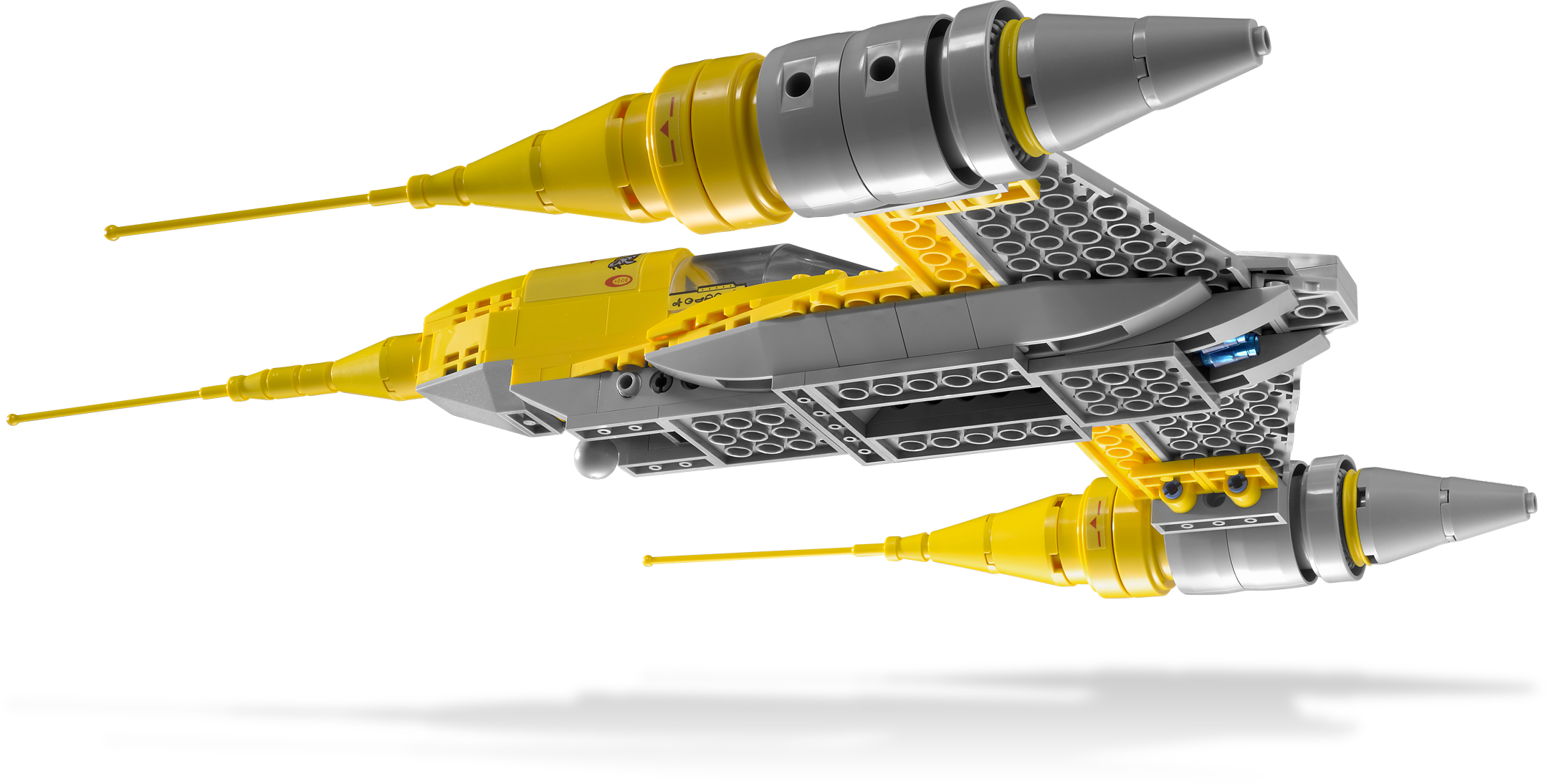 Stop the invasion of Naboo™ with the Naboo Starfighter™! Blast through the battle droids and droideka to clear the hangar! Then speed into battle against the Droid™ Control Ship in the Naboo Starfighter™! Stage a realistic space stand-off with opening cockpit, ejecting R2-D2™, flick missiles, access ladder and rotating stand. Includes Anakin Skywalker™, Naboo™ pilot, R2-D2 and 2 security battle droid minifigures. Service vehicle and droideka™ also included. Includes 5 minifigures: Anakin Skywalker, Naboo pilot, R2-D2 and 2 security battle droids Features droideka and service vehicle Board your ship with the access ladder! Fire missiles at the opposition! Open the realistic cockpit! Eject R2-D2 with a special function! Naboo Starfighter™ measures 14” (35cm) long and 9” (22cm) wide