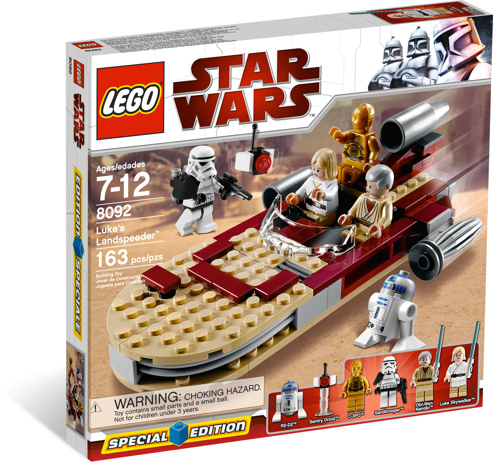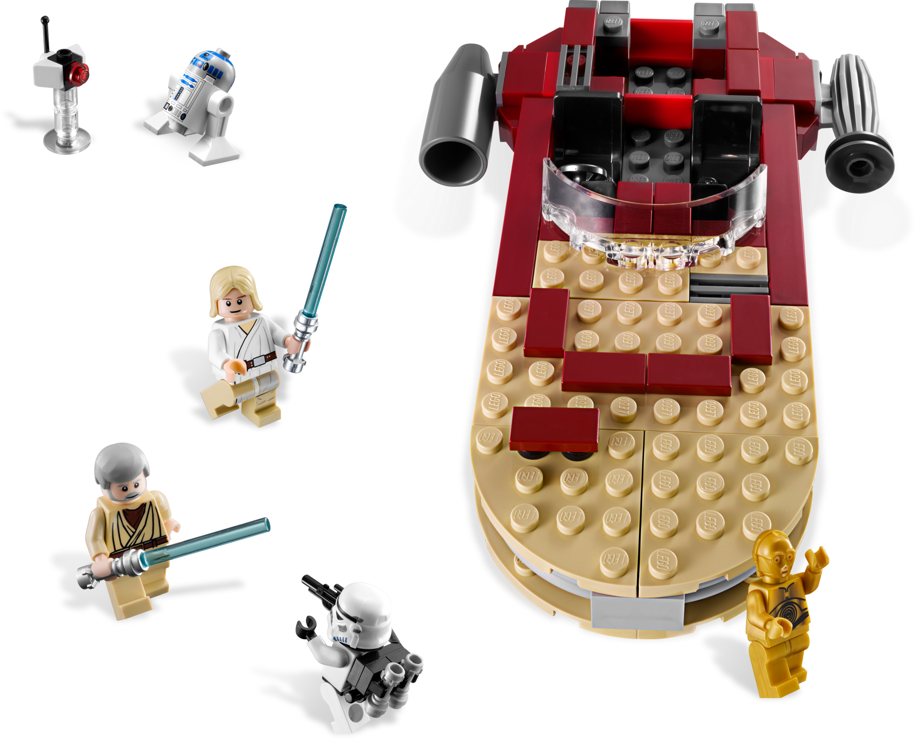 Adventure on Tatooine…where it all began! When he drove the old hermit Ben Kenobi into Mos Eisley spaceport, young farm boy Luke Skywalker™ had no idea that he would end up becoming a Jedi Knight and saving the galaxy. Recreate the moment the adventure began with this special-edition set, featuring an landspeeder vehicle with a secret lightsaber compartment, a cast of droids and heroes, and a sandtrooper guard with a security droid. Are these the droids he’s looking for? Special Edition set every serious collector must have Includes Luke Skywalker, Obi-Wan Kenobi™, R2-D2™, C-3PO™ and sandtrooper New landspeeder vehicle conceals secret lightsaber compartment Sandtrooper guard with security droid Measures over 6" (15cm) long, over 2" (5cm) wide and over 2" (5cm) tall