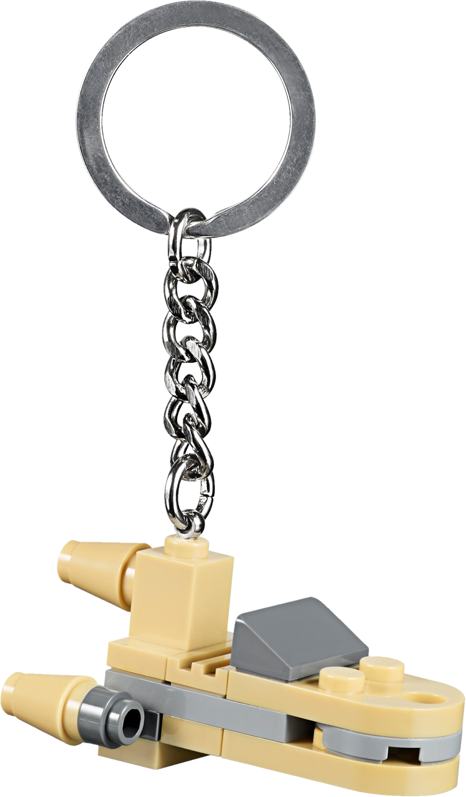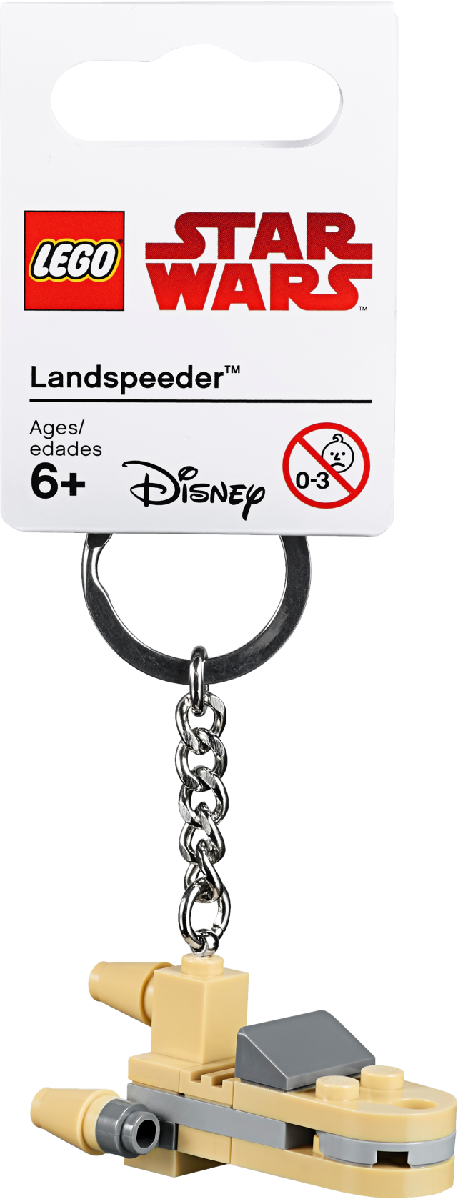 Features a LEGO® Star Wars Landspeeder mini build attached to a sturdy metal ring and chain.