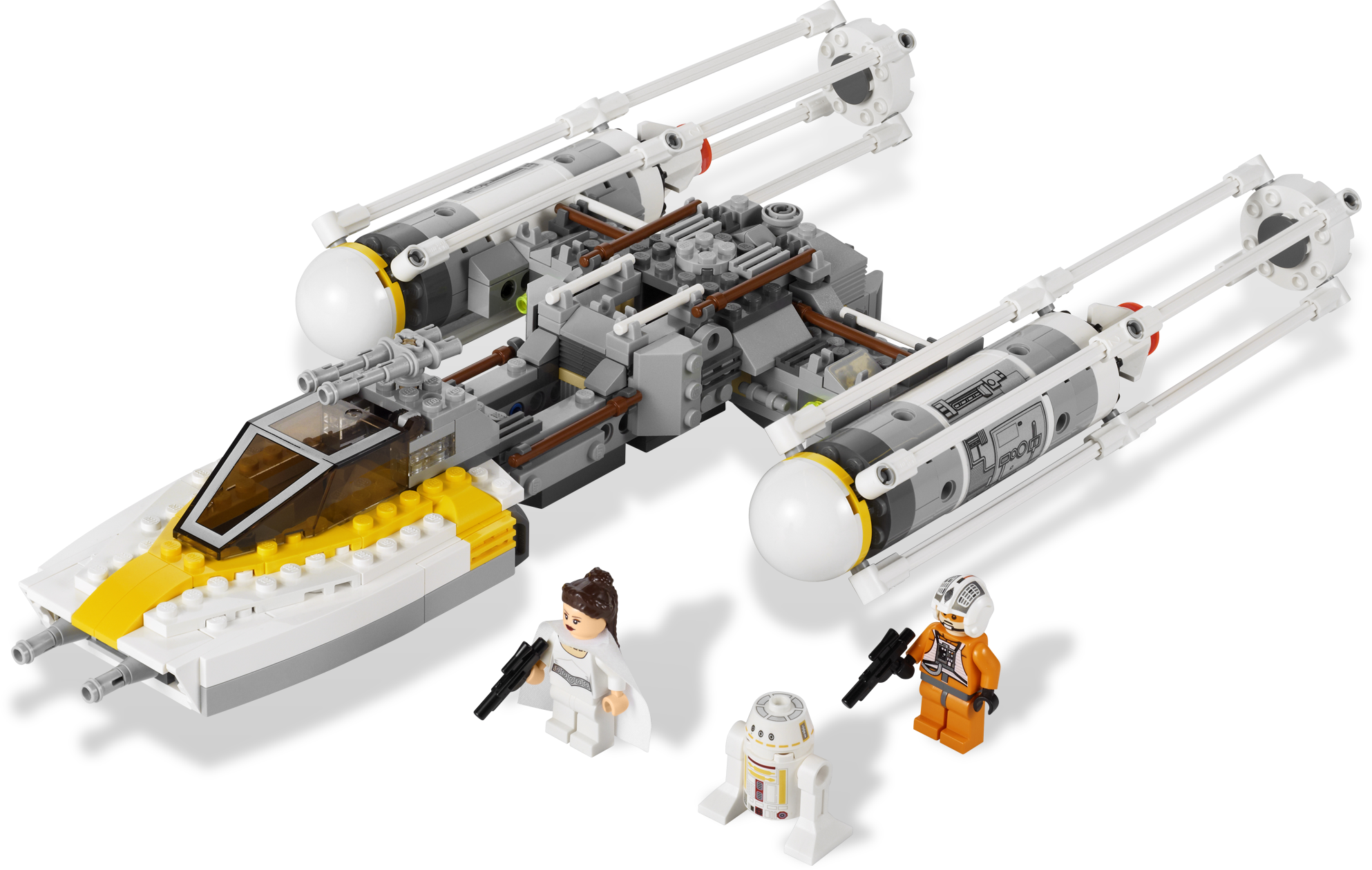 Begin the attack on the mighty Death Star in the Y-Wing Starfighter! Recreating the intense finale of Star Wars: Episode IV A New Hope. Fly Gold Leader Dutch Vander over the Death Star in his Y-Wing Starfighter with bomb load-and-drop function, dual flick missiles, opening cockpit and rotating cannon turret. Then use the medal and Princess Leia at an award ceremony! Includes 3 minifigures: Gold Leader Dutch Vander, ceremonial Leia with medal and R2-A3.Includes 3 minifigures: New Gold Leader Dutch Vander, ceremonial Leia and R2-A3Features Y-Wing Starfighter and 2 blastersY-Wing Starfighter features dual flick missiles, bomb load-and-drop function, bombs, opening cockpit and rotating cannon turretAward the medal of honor with ceremonial Leia!Y-Wing Starfighter measures over 16” (41cm) long