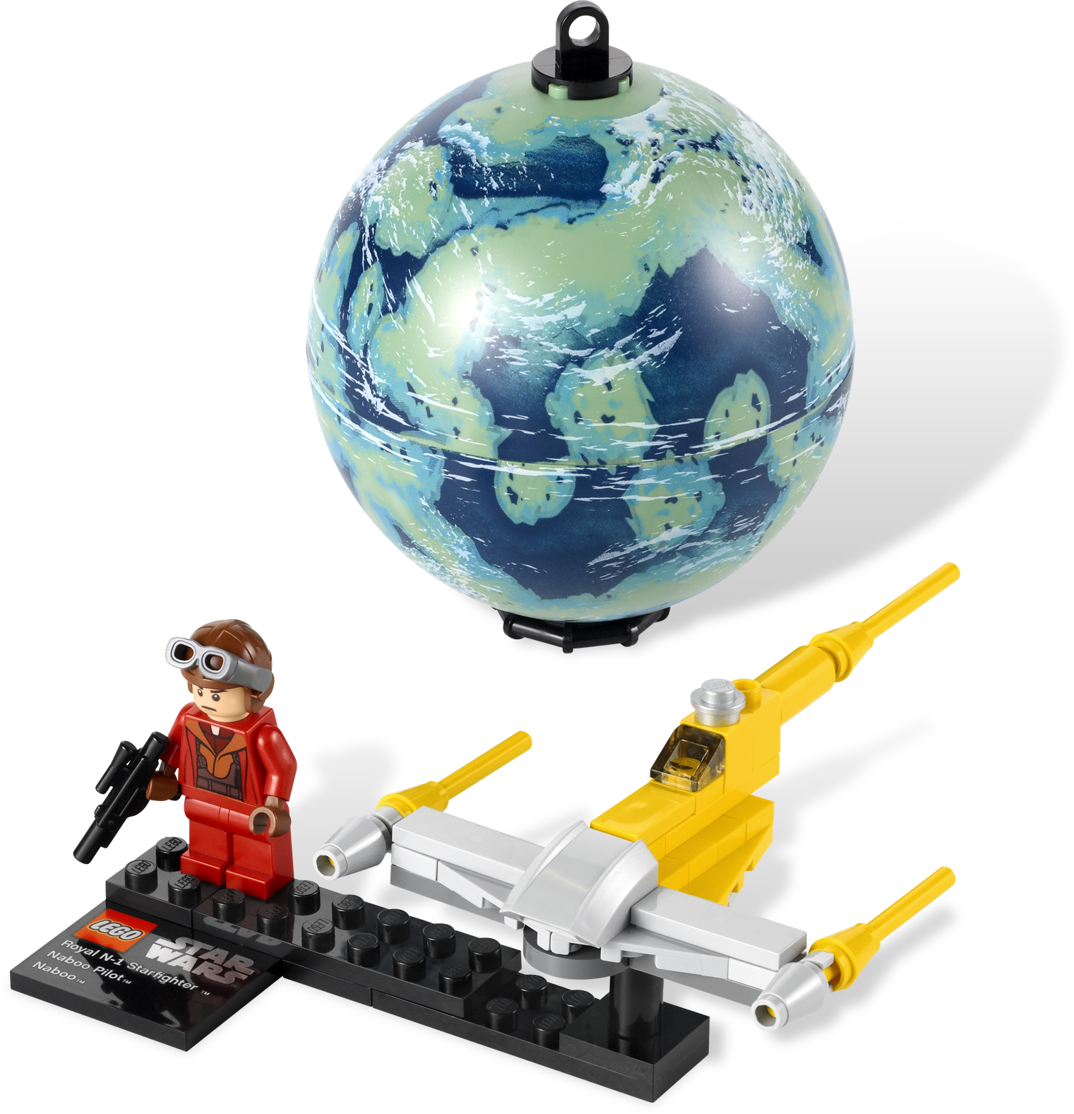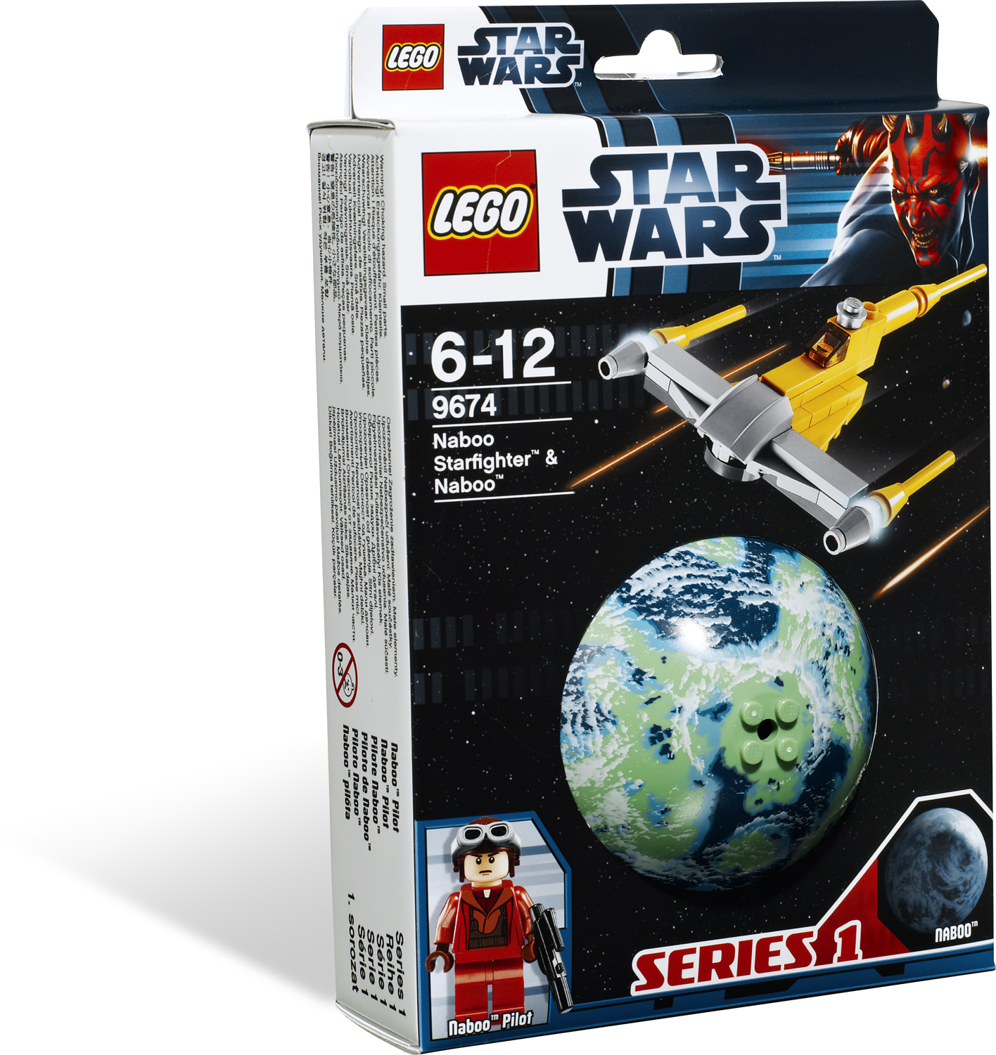 Filled with swamps, grassy plains and vast underground oceans, Naboo plays an important role in Star Wars: Episode I The Phantom Menace. Naboo deploys the sleek Naboo starfighter™ to defend itself against the clutches of the Trade Federation. Set includes an accurate model of Naboo, a Naboo pilot minifigure, a Naboo Starfighter mini-model, a blaster and a display stand with name plaque. Collect the other Series 1 sets: 9675 Sebulba’s Podracer™ & Tatooine™ and 9676 TIE Interceptor™ & Death Star™!