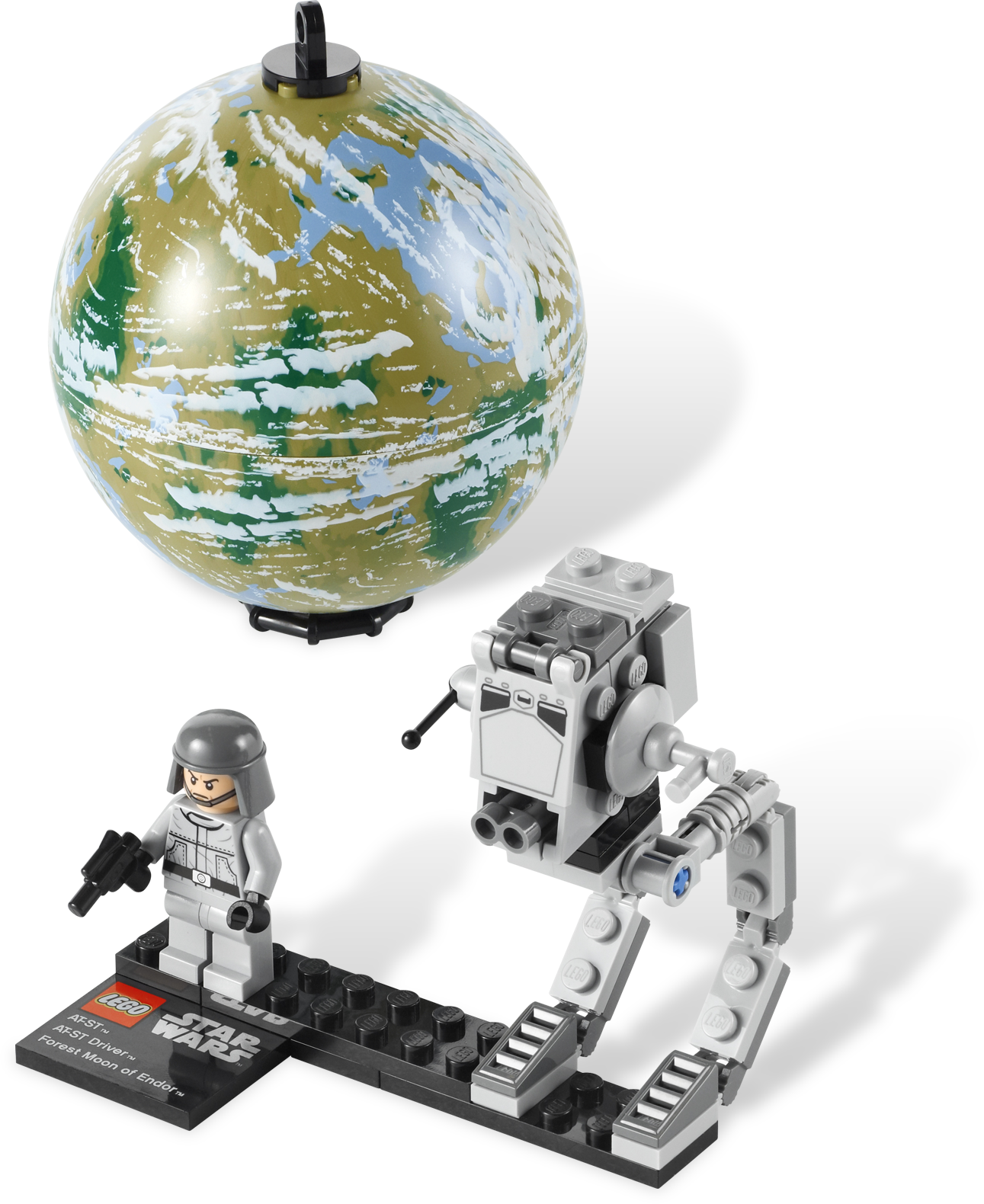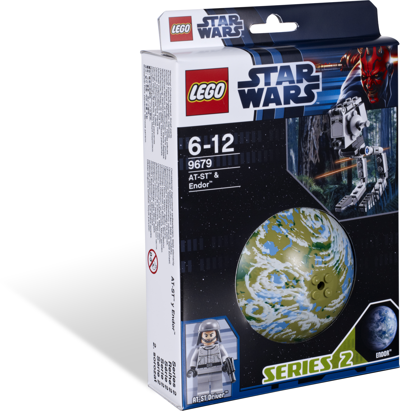 Climb aboard the AT-ST and protect the Endor shield generator! In Star Wars: Episode VI Return of the Jedi, the forest moon of Endor, which houses the second Death Star's shield generator, comes under attack from a Rebel assault team. Aided by the indigenous Ewoks, they overpower the Imperial AT-STs and destroy the shield generator. This set includes an accurate model of Endor, an AT-ST driver minifigure, an AT-ST mini-model, a weapon, and a display stand with name plaque. Collect the other Series 2 sets: 9677 X-wing Starfighter & Yavin 4 and 9678 Twin-pod Cloud Car & Bespin!• Includes 1 minifigure: AT-ST driver• Features Endor, AT-ST mini-model and weapon• Vehicle and minifigure display stand with plaque also included• Hang your planet from the ceiling!• Explore the LEGO Star Wars galaxy while you play!• Planet Endor diameter over 3” (9cm)• AT-ST stands over 3” (9cm) tall