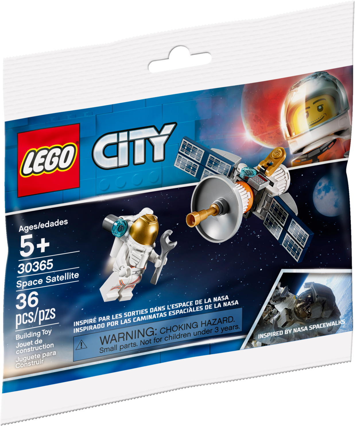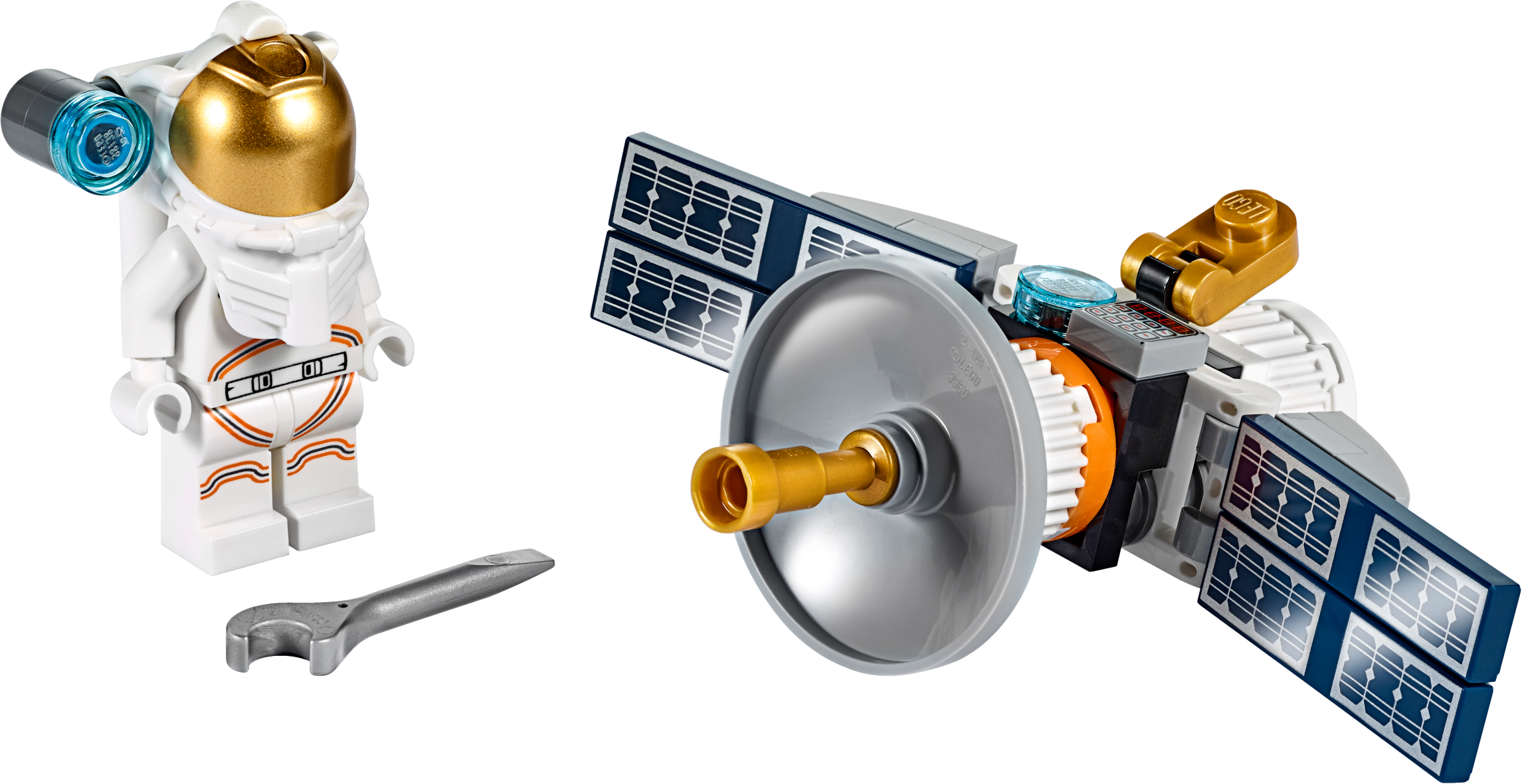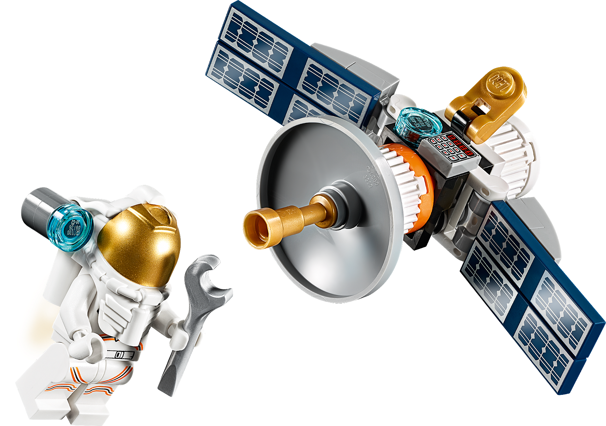Head into LEGO® City space to repair the damaged Space Satellite! This cool toy features a satellite with movable solar panels and a minifigure with EVA space suit with light and helmet with golden visor.