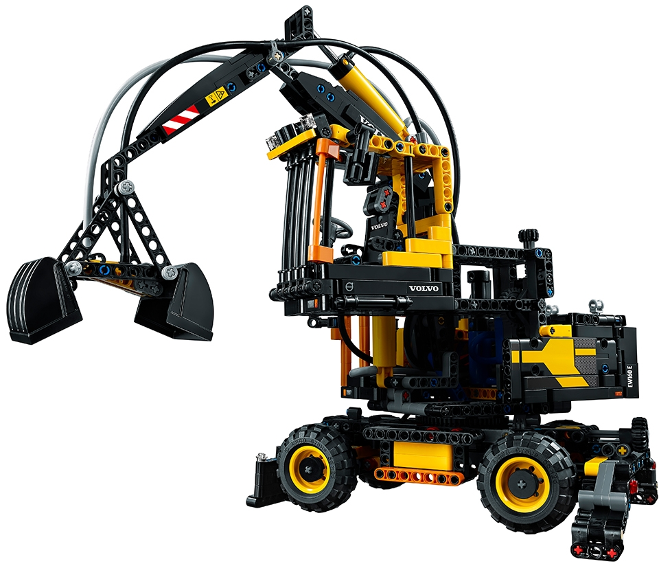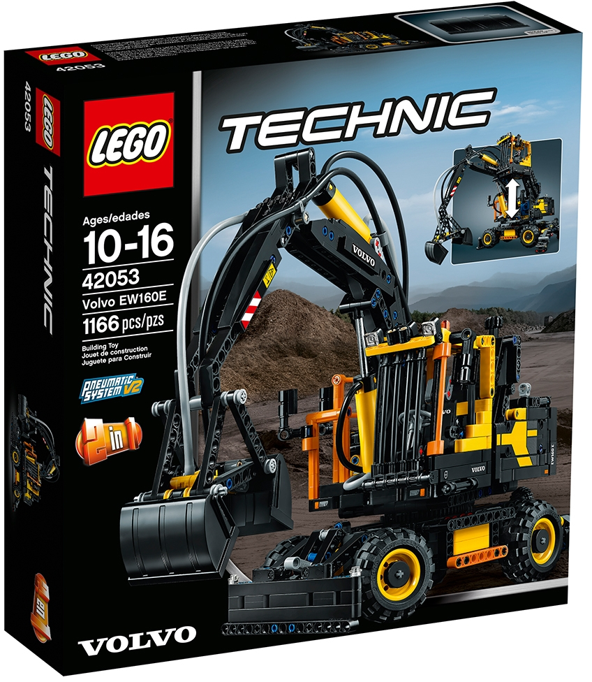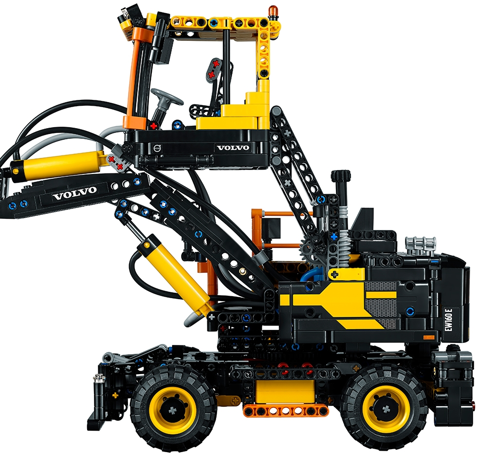 Operate the powerful Volvo EW160E! Enjoy a rewarding building experience with this awesome 2-in-1 LEGO® Technic model. Developed in partnership with Volvo Construction Equipment, this meticulously detailed replica of the Volvo EW160E, with its classic yellow and black color scheme, has all the features of the real-life wheeled excavator. Operate the versatile pneumatic boom and grabbing bucket, rotate the massive superstructure and elevate the cab for optimal visibility. If you need extra stability, extend and secure the outriggers, lower the front blade and lift the entire structure into the air! The authenticity of this model is without bounds, right down to the detailed cab with seat, armrests, sun visor and adjustable mirrors. Upgrade with the LEGO Power Functions 8293 motor set (not supplied) and you have a fully motorized boom and working lights! When you feel like another building challenge, rebuild it into the heavy-duty Volvo L30G compact material handler. Features an extendable boom and working bucket, powered by an advanced pneumatic system, plus an array of manual functions including a height-adjustable cab, rotating superstructure, rear-controlled front steering, working front blade and extendable outriggers. Cab features a detailed interior with seat, armrests, sun visor and adjustable mirrors. Check out the authentic yellow and black color scheme. Extend, raise and lower the pneumatic boom. Open and close the pneumatic bucket. Raise the cab to dizzying heights! Rotate the superstructure through 347° Lift and lower the front blade. Extend the outriggers, lock them into position, lower the front blade and lift the entire structure into the air. Upgrade with the 8293 LEGO® Power Functions motor set (not included) for a fully motorized boom and working lights. This LEGO® Technic model is designed to provide an immersive and rewarding building experience. This set includes over 1,100 pieces. This set offers an age-appropriate building experience for ages 10-16. 2-in-1 model: rebuilds into a Volvo L30G. Volvo EW160E with boom and outriggers retracted measures over 6” (17cm) high, 9” (25cm) long and 4” (12cm) wide, and over 11” (29cm) high, 18” (47cm) long and 7” (18cm) wide with boom and outriggers extended. Volvo L30G with bucket lowered measures over 6” (17cm) high, 13” (34cm) long and 5” (13cm) wide, and over 10” (26cm) high with bucket raised.