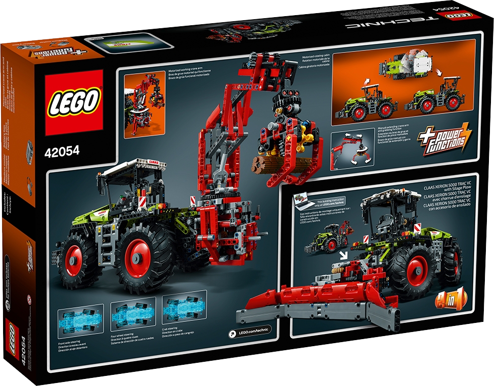 Harness the awesome power of the CLAAS XERION 5000 TRAC VC Experience the ultimate in farming technology with this 2-in-1 LEGO® Technic reproduction of the high-powered CLAAS XERION tractor. This meticulously detailed replica comes with the trademarked green, gray and red color scheme and an array of authentic features and functions. Turn on the included Power Functions motor and you can raise the cab and turn it through 180°, operate the versatile crane or extend the outriggers. The vehicle’s front-wheel, 4-wheel and crab steering provide ultimate maneuverability with the huge tractor tires ensuring optimal grip for immense pulling power on all types of terrain. Rebuild the tractor’s crane to create a CLAAS XERION 5000 TRAC VC with Silage Plow!Features a LEGO® Power Functions motor for an array of motorised functions, including a rotating cab, extendable outriggers and automated crane arm, plus huge tractor tyres, working crane claw and front-wheel, 4-wheel and crab steering.Check out the authentic green, gray and red colour scheme.Activate the LEGO® Power Functions to operate the crane arm and extend the outriggers.Turn the motorised cab through 180° for reversed driving position.Open and close the crane claw to grab and lift the huge tree trunk!This LEGO® Technic model is designed to provide an immersive and rewarding building experience. This set includes over 1,950 pieces and offers an age-appropriate building experience for ages 11-16.2-in-1 model: rebuilds into a CLAAS XERION 5000 TRAC VC with Silage Plow.CLAAS XERION 5000 TRAC VC with crane arm lowered measures over 11” (30cm) high, 24” (61cm) long and 7” (18cm) wide, and over 14" (37cm) high with crane arm raised.CLAAS XERION 5000 TRAC VC with Silage Plow measures over 8” (21cm) high, 20” (52cm) long and 13” (35cm) wide.