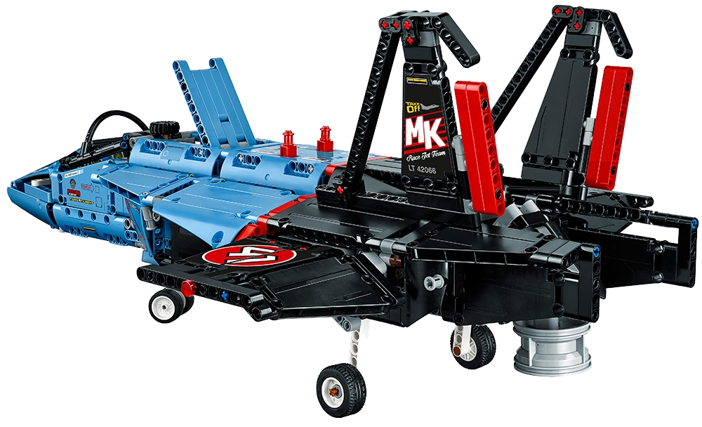 Reach supersonic speeds with this huge, aerodynamic LEGO® Technic Air Race Jet, featuring a blue, black and red color scheme with racing stickers and an array of intricate technical details and motorized functions, including an adjustable jet nozzle for vertical or horizontal takeoff position, hatch access to a spinning fan, opening fuselage, retractable undercarriage, and adjustable flaps. Manual functions include working front steering, movable tail rudders and an opening cockpit. This robust and highly detailed 2-in-1 model has been designed to provide an immersive and rewarding build-and-play experience and can be rebuilt to create a Private Jet.