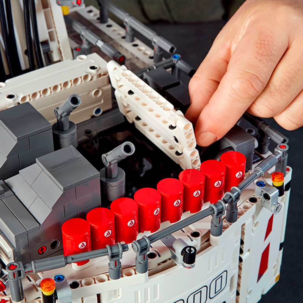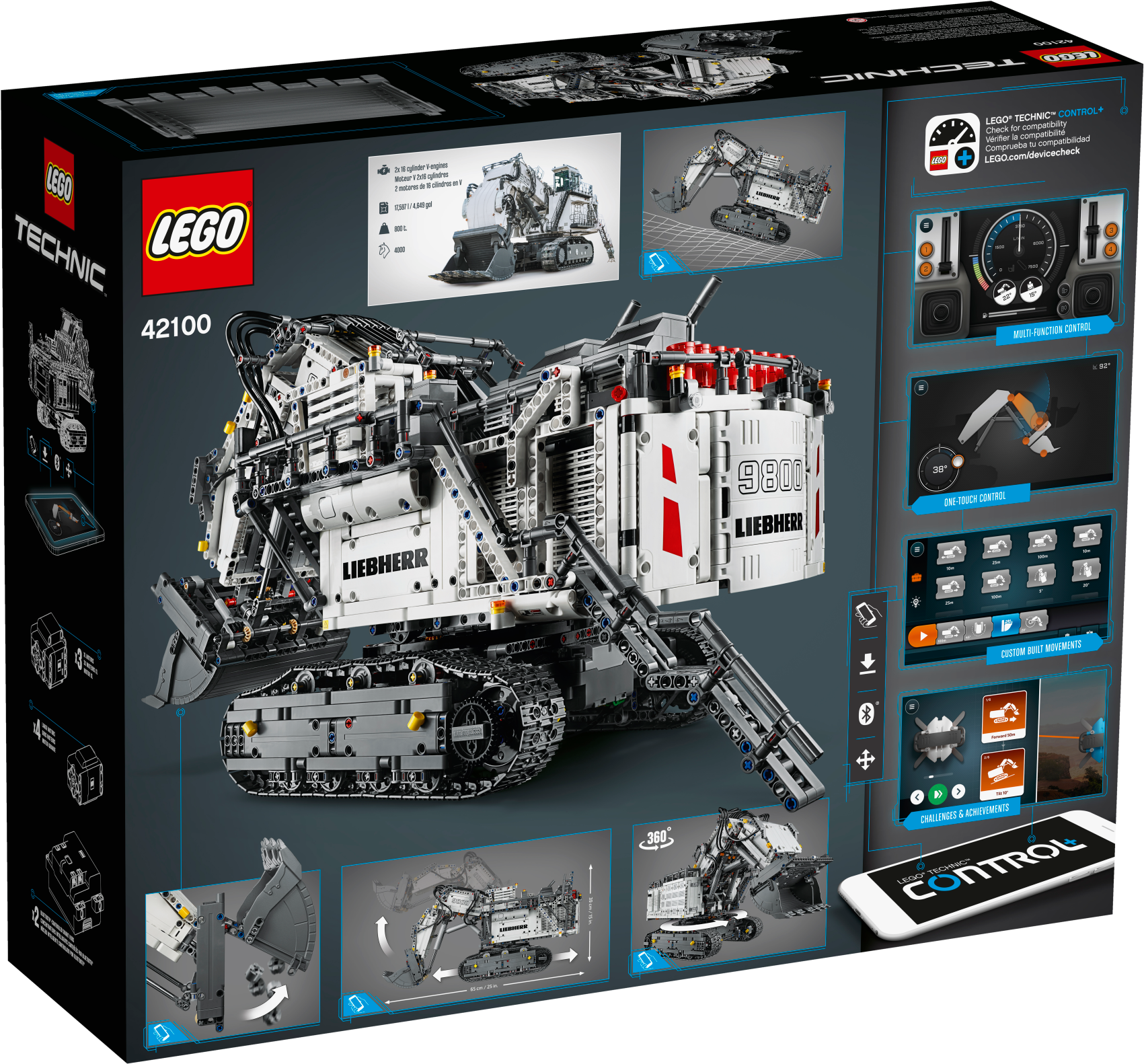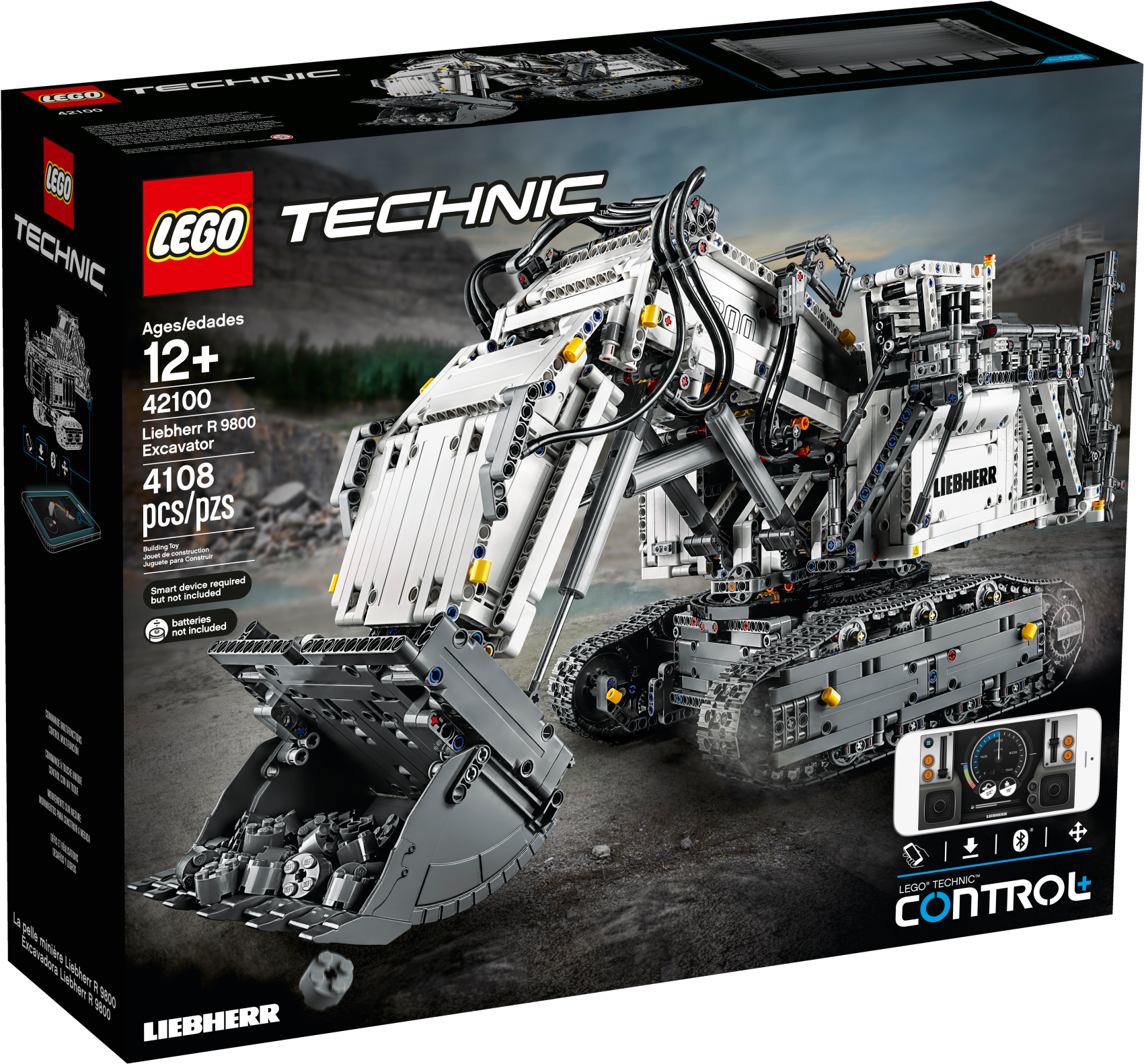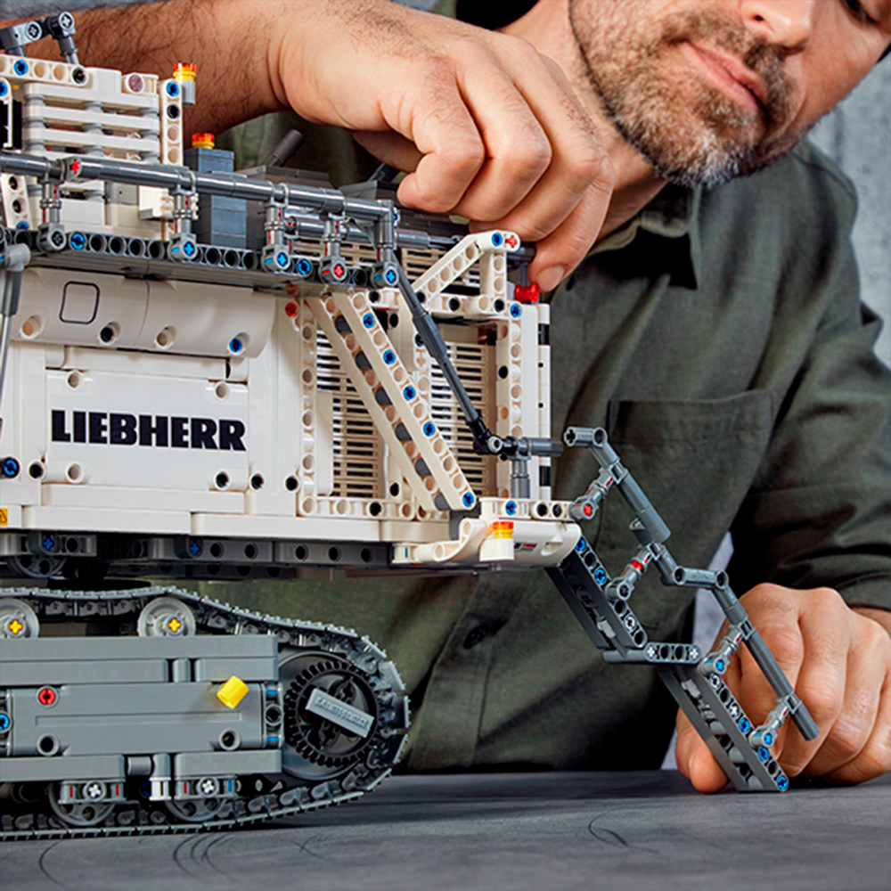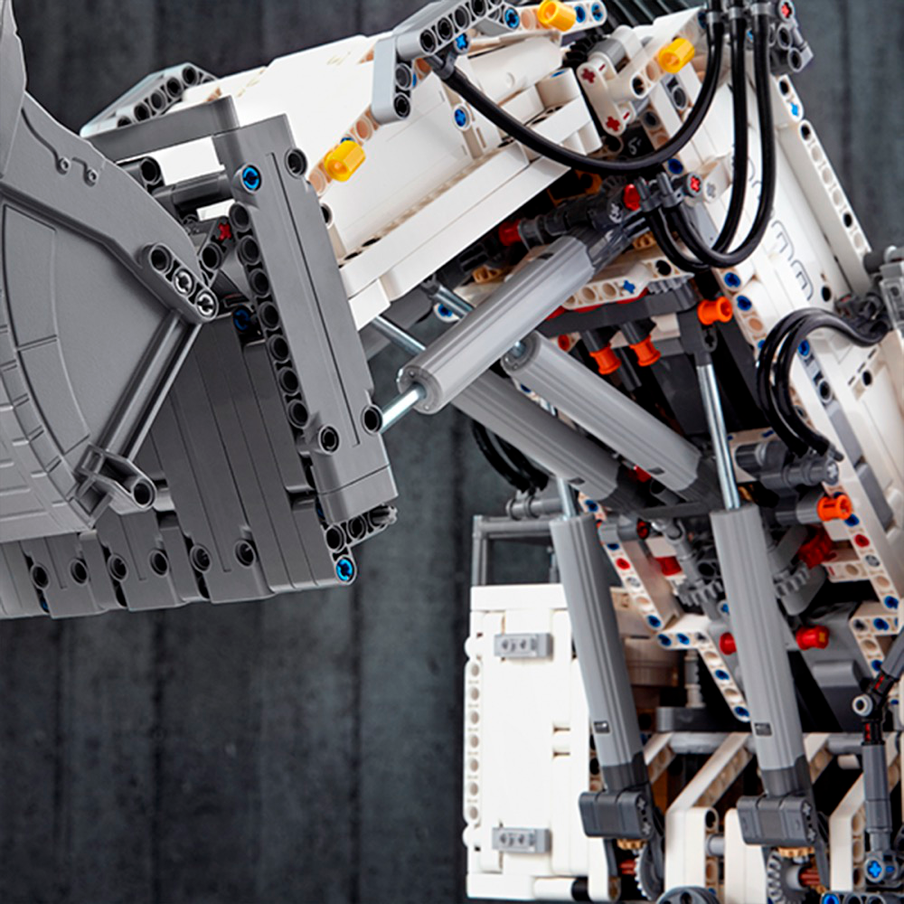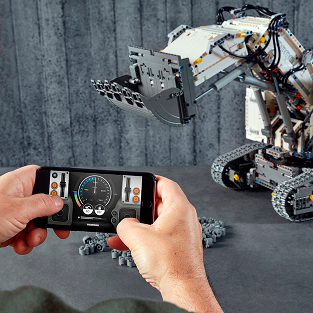 Get ready for a colossal LEGO® build and play experience with the 4,108-piece LEGO Technic™ Liebherr R 9800 Excavator. Developed in partnership with Liebherr, this replica model is operated via the intuitive LEGO TECHNIC CONTROL+ app and powered by 2 advanced Smart Hubs with 7 motors. The sophisticated app technology enables super-precise movement and amazing functionality, while delivering endless authentic digital play combinations via 4 different control screens with cool graphics. The Multi-function control screen enables users to drive the machine in all directions, rotate the superstructure, extend and raise the boom, open and tilt the bucket, play realistic sound effects and get real-time feedback, such as boom position, power usage and drive distance. With the One-touch screen, users can use drag patterns to control the boom, arm and bucket, while the Custom-built movements screen enables them to choose pre-set commands or record the model’s actions to create complex sequences of movements. And, with the Challenges & achievements screen, users can complete challenges to unlock reward badges. This excavator model features the LEGO® TECHNIC™ CONTROL+ app for a more immersive and realistic play experience and hours of fun. The app-controlled LEGO® Technic™ Liebherr R 9800 Excavator is operated via a smart device with 4 alternative control screens. Go to LEGO.com/devicecheck for a list of compatible smart devices. Multi-function control: Drive forward, reverse, steer, rotate the superstructure, extend, raise and lower the boom, open and tilt the bucket and get model feedback, such as boom and superstructure position, power usage and drive distance. One-touch control: Select an on-screen drag pattern and see the excavator respond to your command. Custom-built movements: Use pre-set commands or record the model’s actions to create complex sequences of movements. Challenges & achievements: Complete challenges to unlock reward badges. Replica of the Liebherr R 9800 Excavator with an array of true-to-life features and functions, finished with an authentic color scheme and cool sticker detailing. Includes 3 XL Motors, 4 L Motors and 2 Bluetooth-controlled Smart Hubs. Smart Hubs feature Bluetooth Low Energy (BLE) connectivity, activation button, 6 axis sensor (3 gyro and 3 accelerometer sensors) and 4 connectivity ports. The app allows users to connect to multiple hubs, ensuring precise and true-to-life movements. Download the app from the App Store or Google Play. Ask your parents’ permission before going online. This excavator toy requires batteries (not included). Please refer to the product packaging for type and quantity. This LEGO® Technic™ construction toy introduces LEGO builders to advanced elements of engineering. Not compatible with the Power Functions systems. Liebherr R 9800 Excavator measures over 15” (39cm) high, 25” (65cm) long and 10” (27cm) wide.
