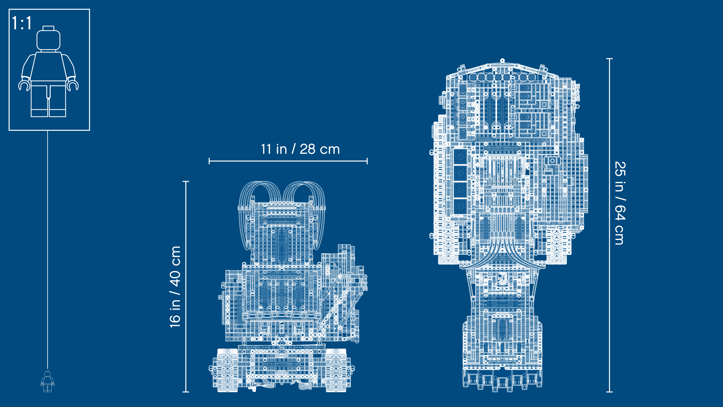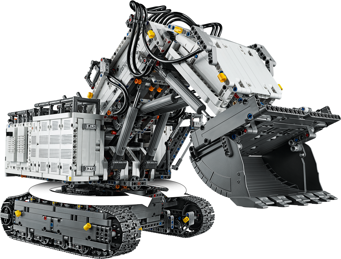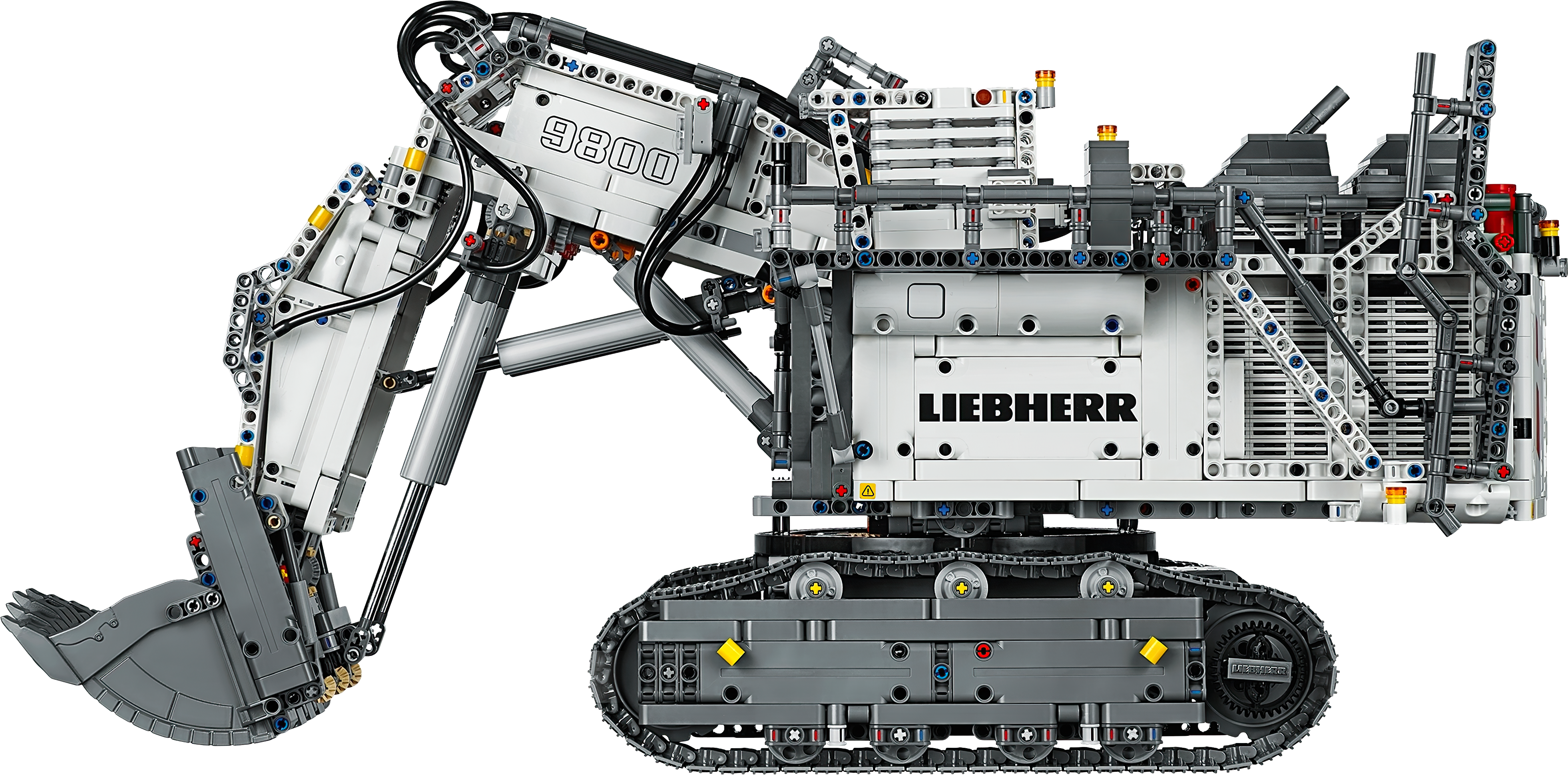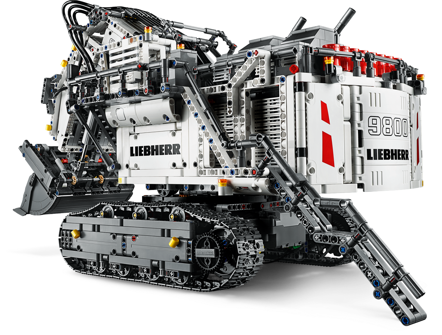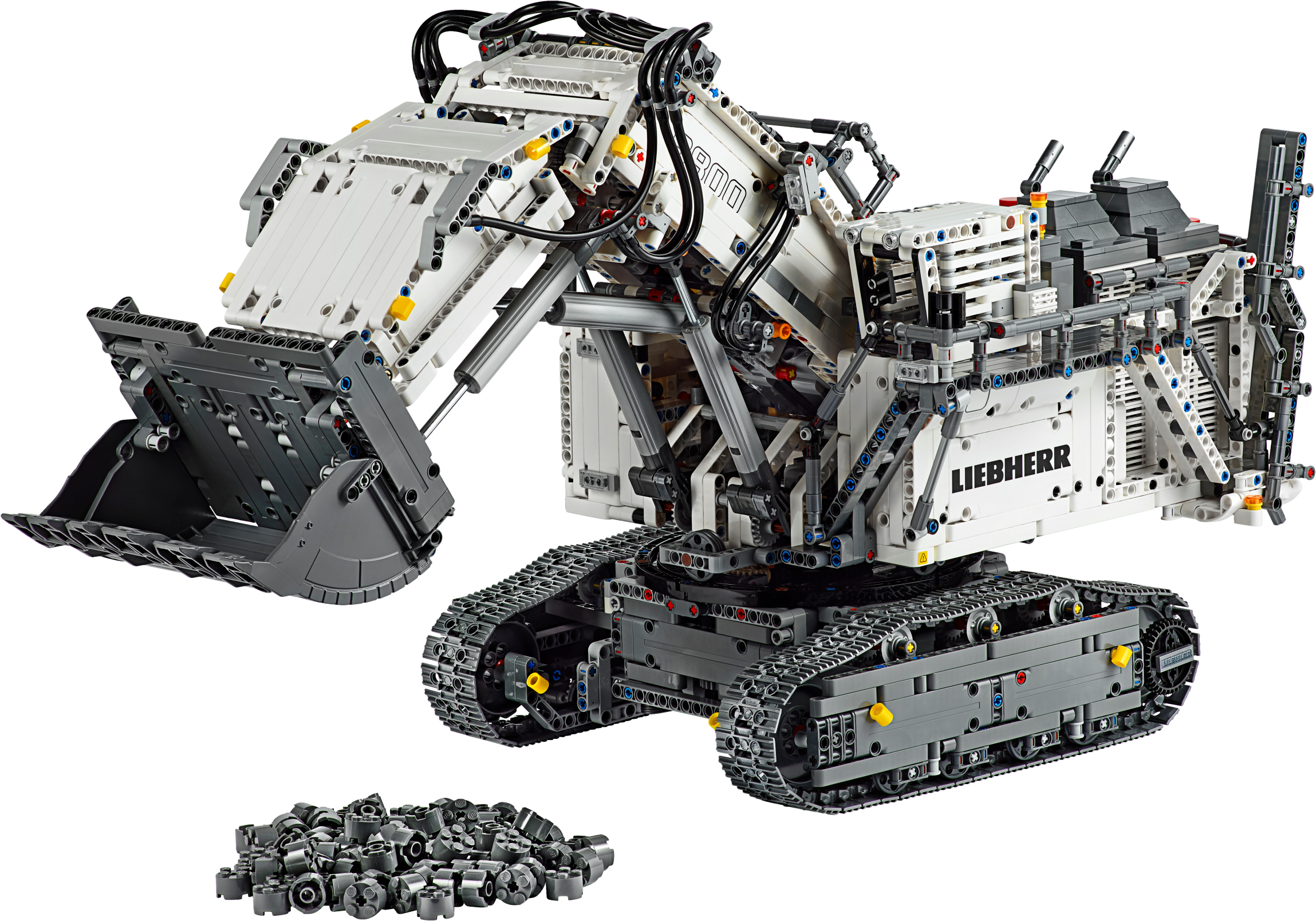 Get ready for a colossal LEGO® build and play experience with the 4,108-piece LEGO Technic™ Liebherr R 9800 Excavator. Developed in partnership with Liebherr, this replica model is operated via the intuitive LEGO TECHNIC CONTROL+ app and powered by 2 advanced Smart Hubs with 7 motors. The sophisticated app technology enables super-precise movement and amazing functionality, while delivering endless authentic digital play combinations via 4 different control screens with cool graphics. The Multi-function control screen enables users to drive the machine in all directions, rotate the superstructure, extend and raise the boom, open and tilt the bucket, play realistic sound effects and get real-time feedback, such as boom position, power usage and drive distance. With the One-touch screen, users can use drag patterns to control the boom, arm and bucket, while the Custom-built movements screen enables them to choose pre-set commands or record the model’s actions to create complex sequences of movements. And, with the Challenges & achievements screen, users can complete challenges to unlock reward badges. This excavator model features the LEGO® TECHNIC™ CONTROL+ app for a more immersive and realistic play experience and hours of fun. The app-controlled LEGO® Technic™ Liebherr R 9800 Excavator is operated via a smart device with 4 alternative control screens. Go to LEGO.com/devicecheck for a list of compatible smart devices. Multi-function control: Drive forward, reverse, steer, rotate the superstructure, extend, raise and lower the boom, open and tilt the bucket and get model feedback, such as boom and superstructure position, power usage and drive distance. One-touch control: Select an on-screen drag pattern and see the excavator respond to your command. Custom-built movements: Use pre-set commands or record the model’s actions to create complex sequences of movements. Challenges & achievements: Complete challenges to unlock reward badges. Replica of the Liebherr R 9800 Excavator with an array of true-to-life features and functions, finished with an authentic color scheme and cool sticker detailing. Includes 3 XL Motors, 4 L Motors and 2 Bluetooth-controlled Smart Hubs. Smart Hubs feature Bluetooth Low Energy (BLE) connectivity, activation button, 6 axis sensor (3 gyro and 3 accelerometer sensors) and 4 connectivity ports. The app allows users to connect to multiple hubs, ensuring precise and true-to-life movements. Download the app from the App Store or Google Play. Ask your parents’ permission before going online. This excavator toy requires batteries (not included). Please refer to the product packaging for type and quantity. This LEGO® Technic™ construction toy introduces LEGO builders to advanced elements of engineering. Not compatible with the Power Functions systems. Liebherr R 9800 Excavator measures over 15” (39cm) high, 25” (65cm) long and 10” (27cm) wide.