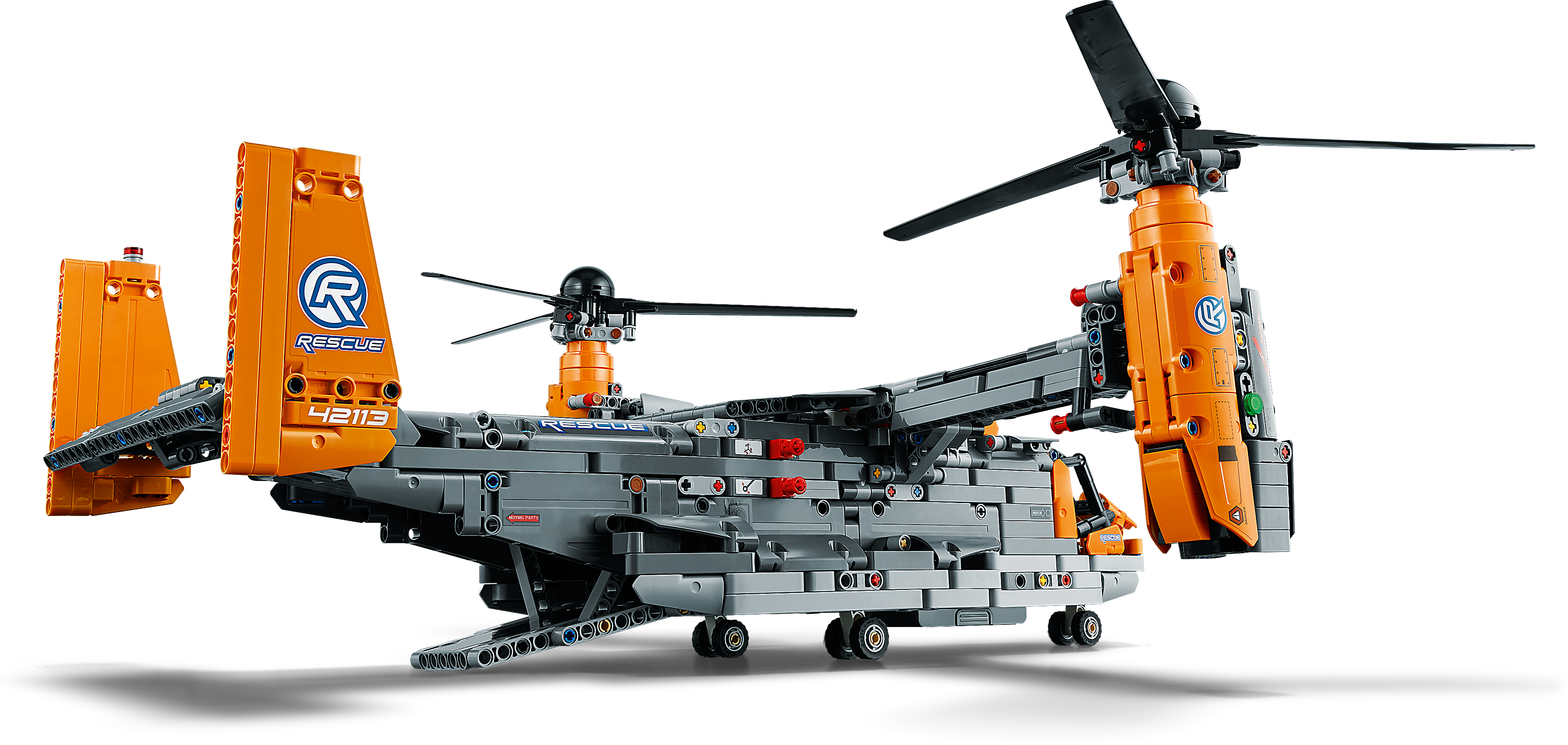 Packed with realistic details for imaginative play Kids will love exploring this feature-packed aircraft. Power up your build with the included battery box and large motor to bring the toy aircraft model to life. Control the retractable landing gear and rotate the nacelles to switch from vertical take-off mode to flight mode. Authentic details include a gearbox with four different functions, plus an opening cargo bay door and spinning propellers.