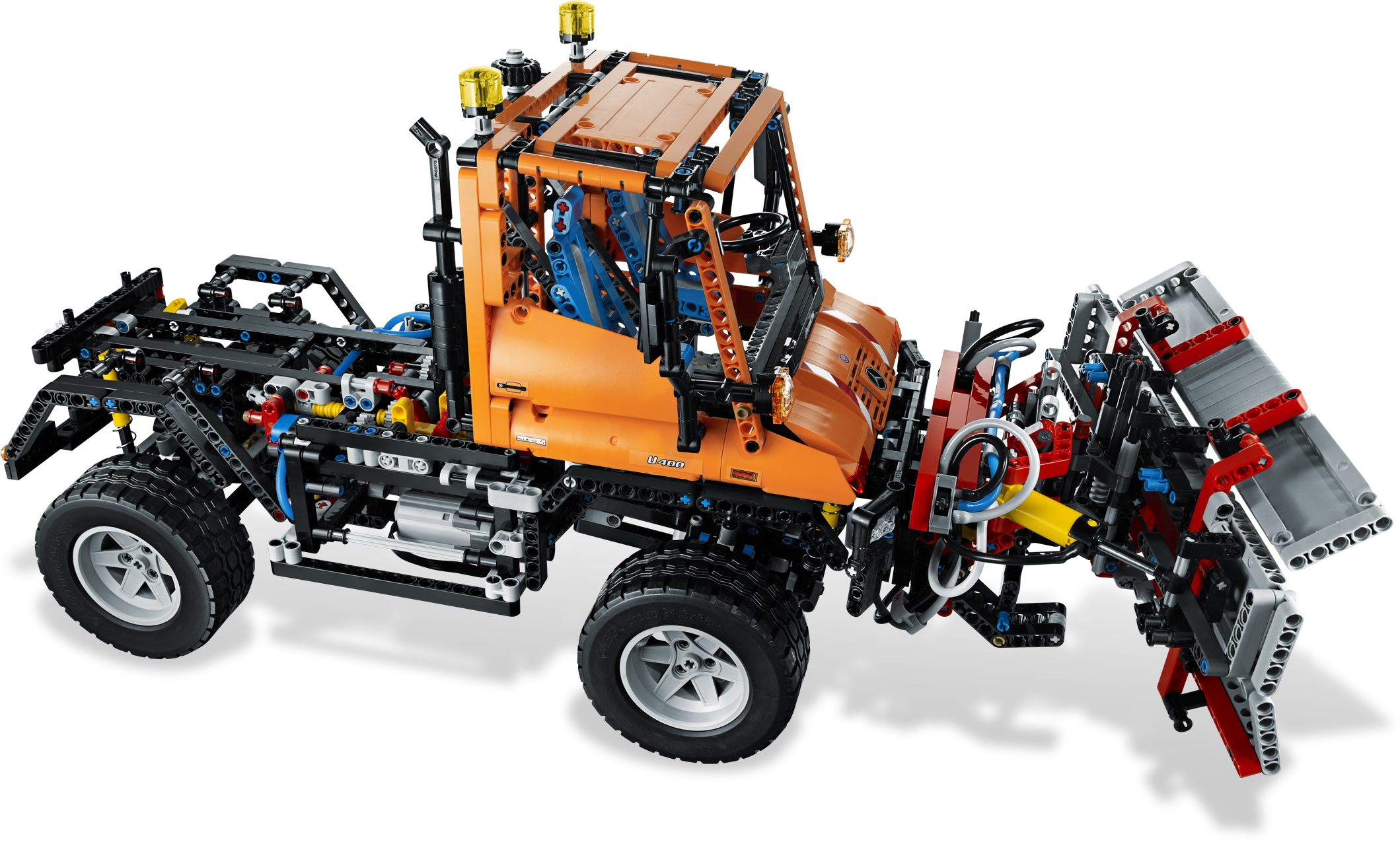 No job is too big for the multi-purpose Mercedes-Benz Unimog U 400! Featuring a pneumatically powered, articulated crane with working grabber and a recovery winch on the front – this mechanical monster is driven by LEGO® Power Functions. The high-tech design features working steering, 4-wheel drive and suspension, a gear block for extreme ground clearance and a detailed engine with moving pistons. Rebuild the crane and winch into a huge snow plow.