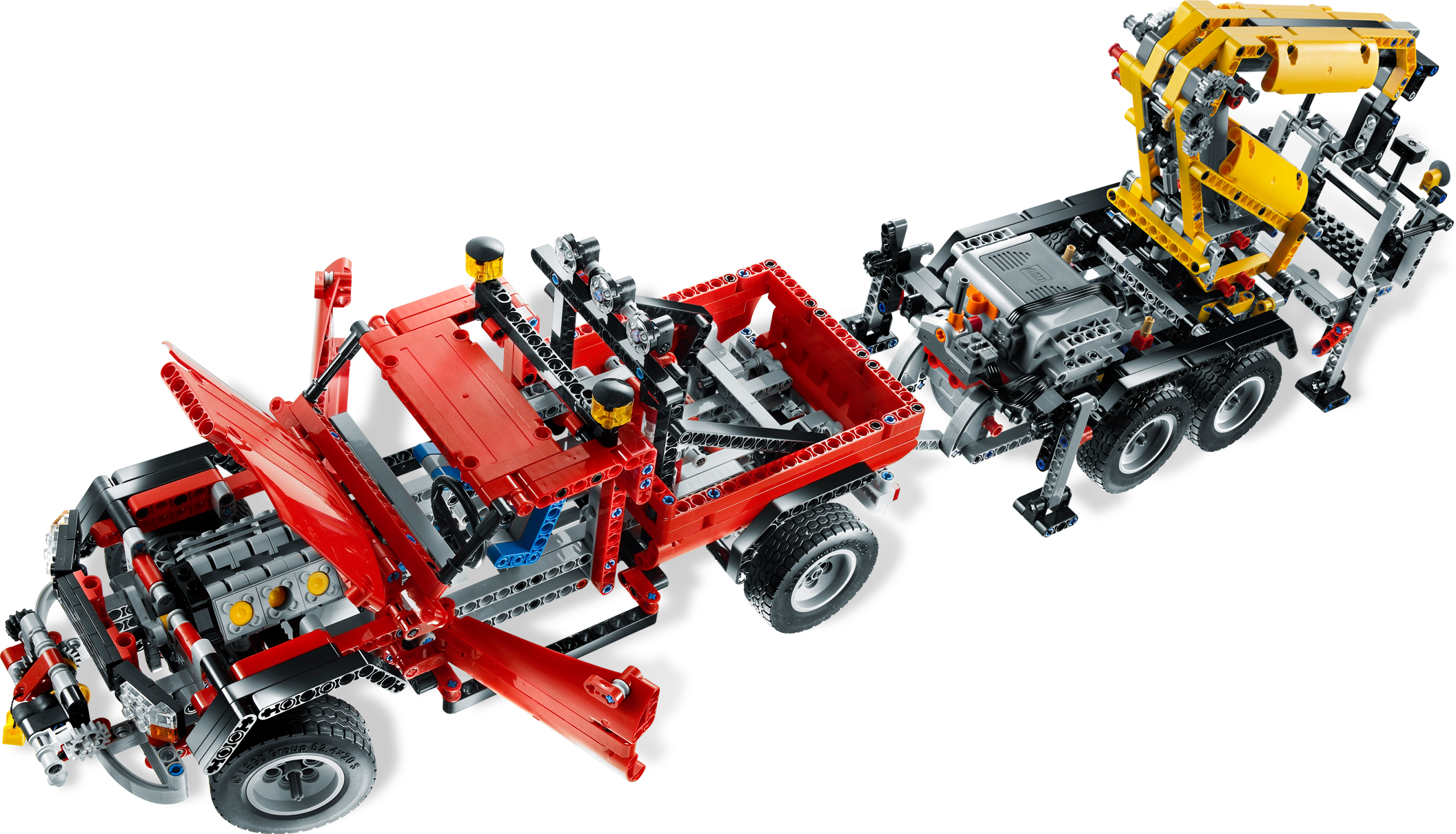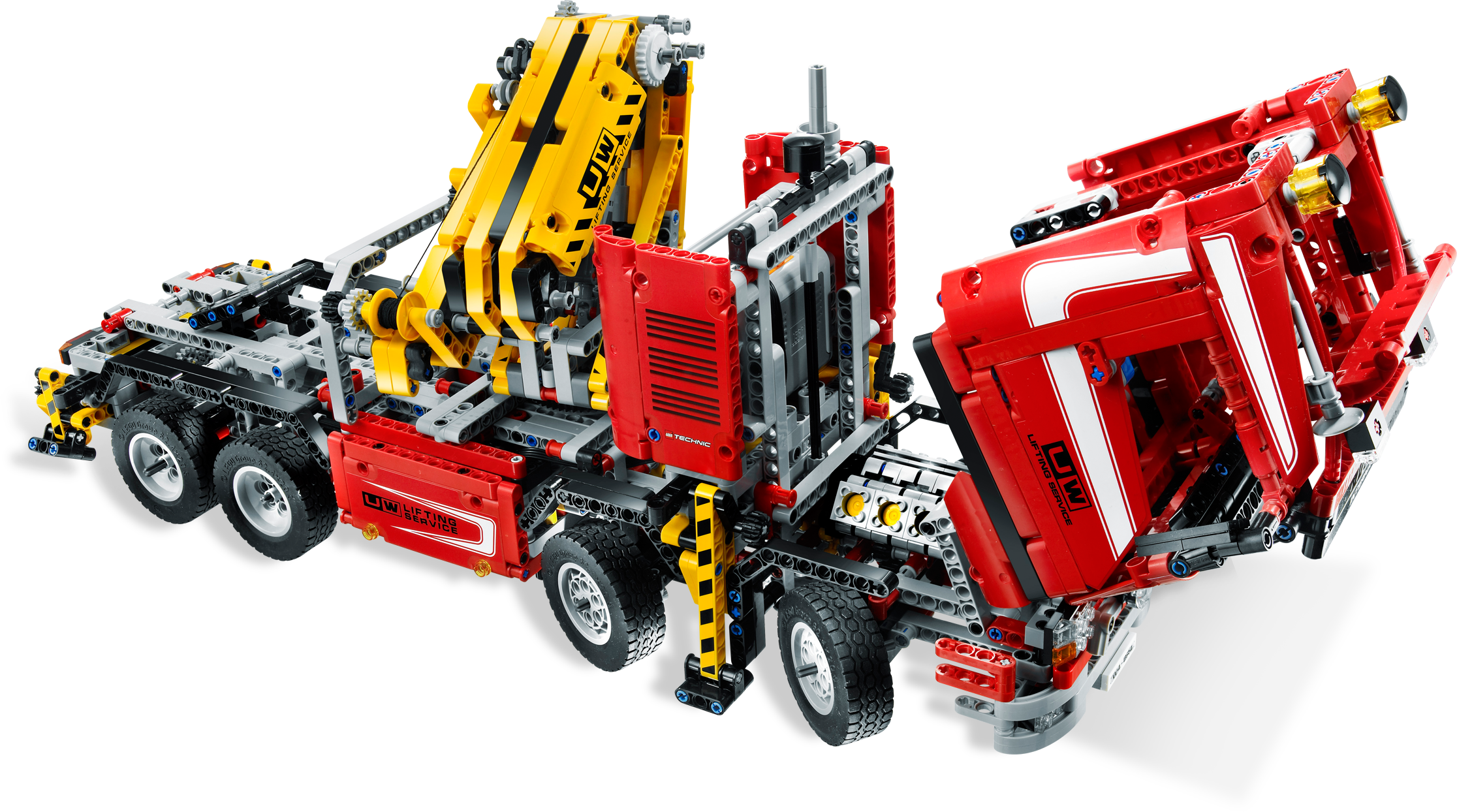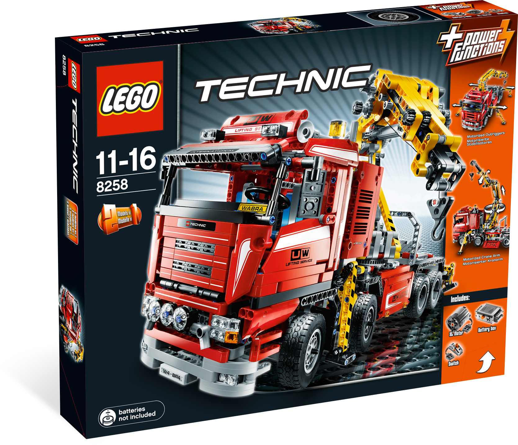 When you need to move the biggest and heaviest loads, it’s time to call on the mighty crane truck! This massive, realistic vehicle includes a Power Functions control box that you can use to unfold, raise and lower its powerful, motorized crane arm, and to extend the outriggers to stabilize your cargo. Download instructions for rebuilding into a Duty Wrecker!